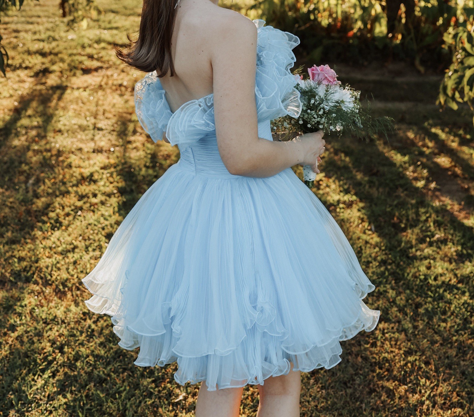 как выглядит Sherri Hill Size 0/Light Blue Short Homecoming Dress/ Bought In 2023 Worn Once фото