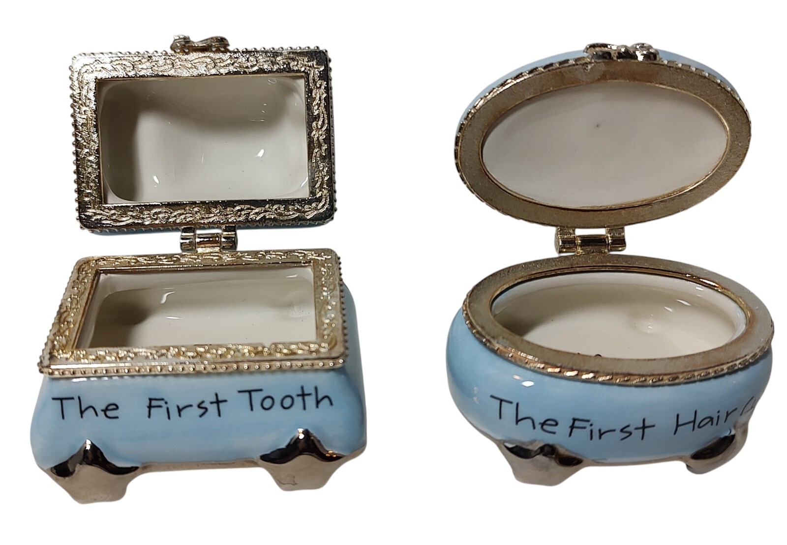 Mud Pie Baby Boy Prince First Tooth and Haircut Ceramic Hinged Trinket Box Set