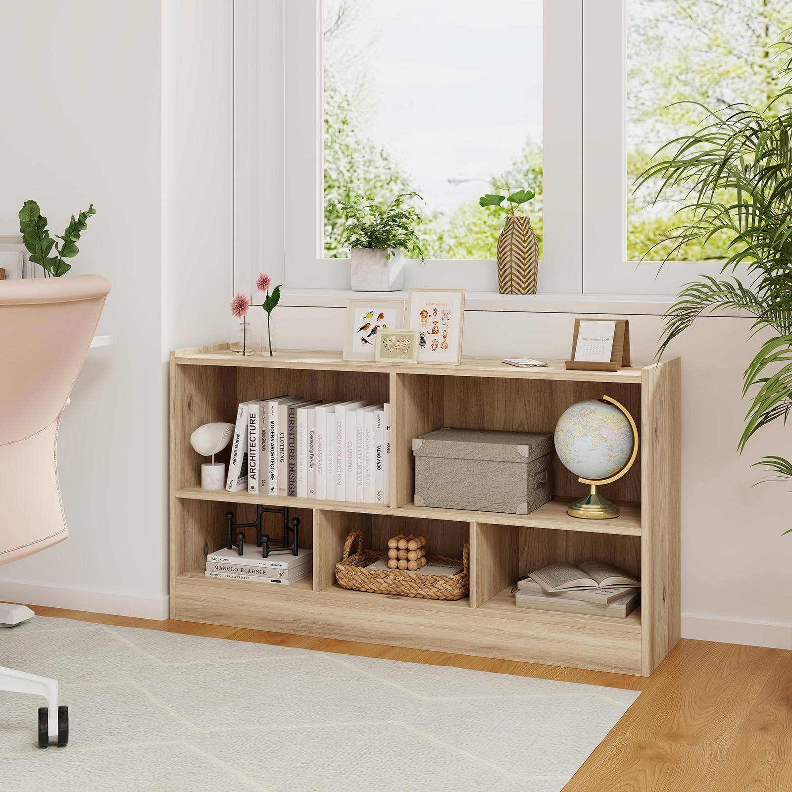 5 Cube Storage Organizer,2-Tier Horizontal Bookshelf,Wooden Display Book Shelves