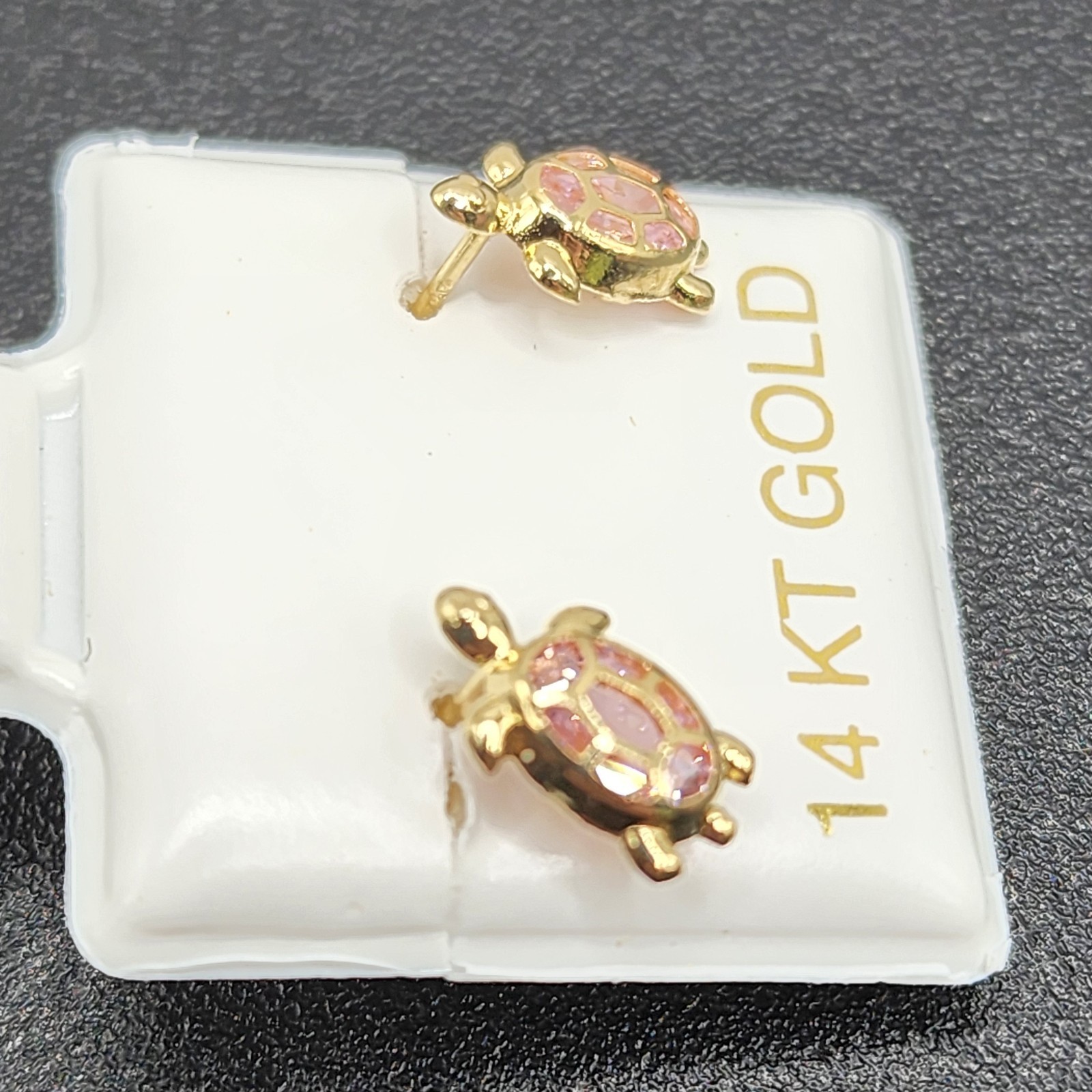 как выглядит 14K Yellow Gold Pink CZ Turtle Safety Screw Back Earrings фото