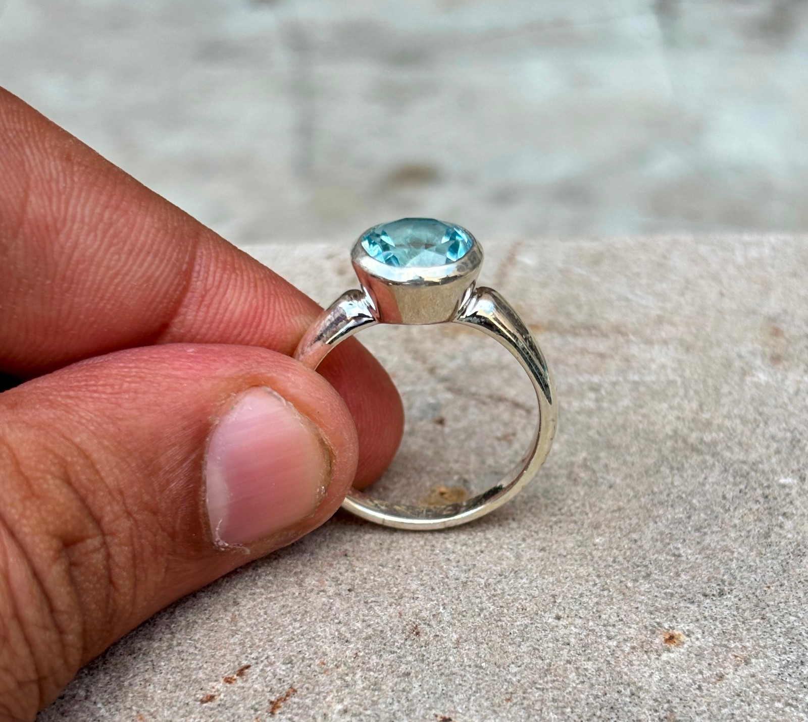 как выглядит Natural Blue Topaz Ring 925 Silver Handmade Birthstone Jewelry фото
