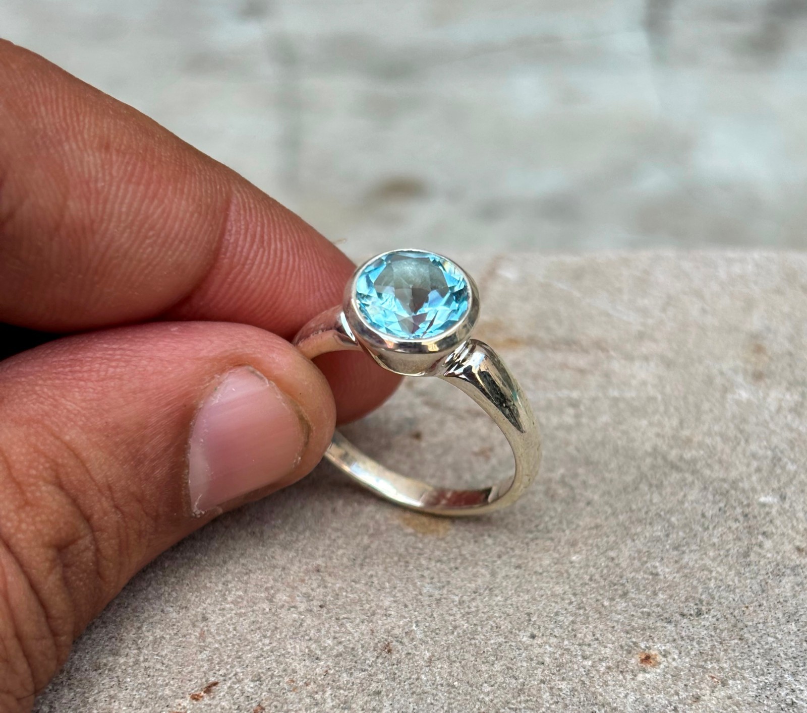 Natural Blue Topaz Ring 925 Silver Handmade Birthstone Jewelry