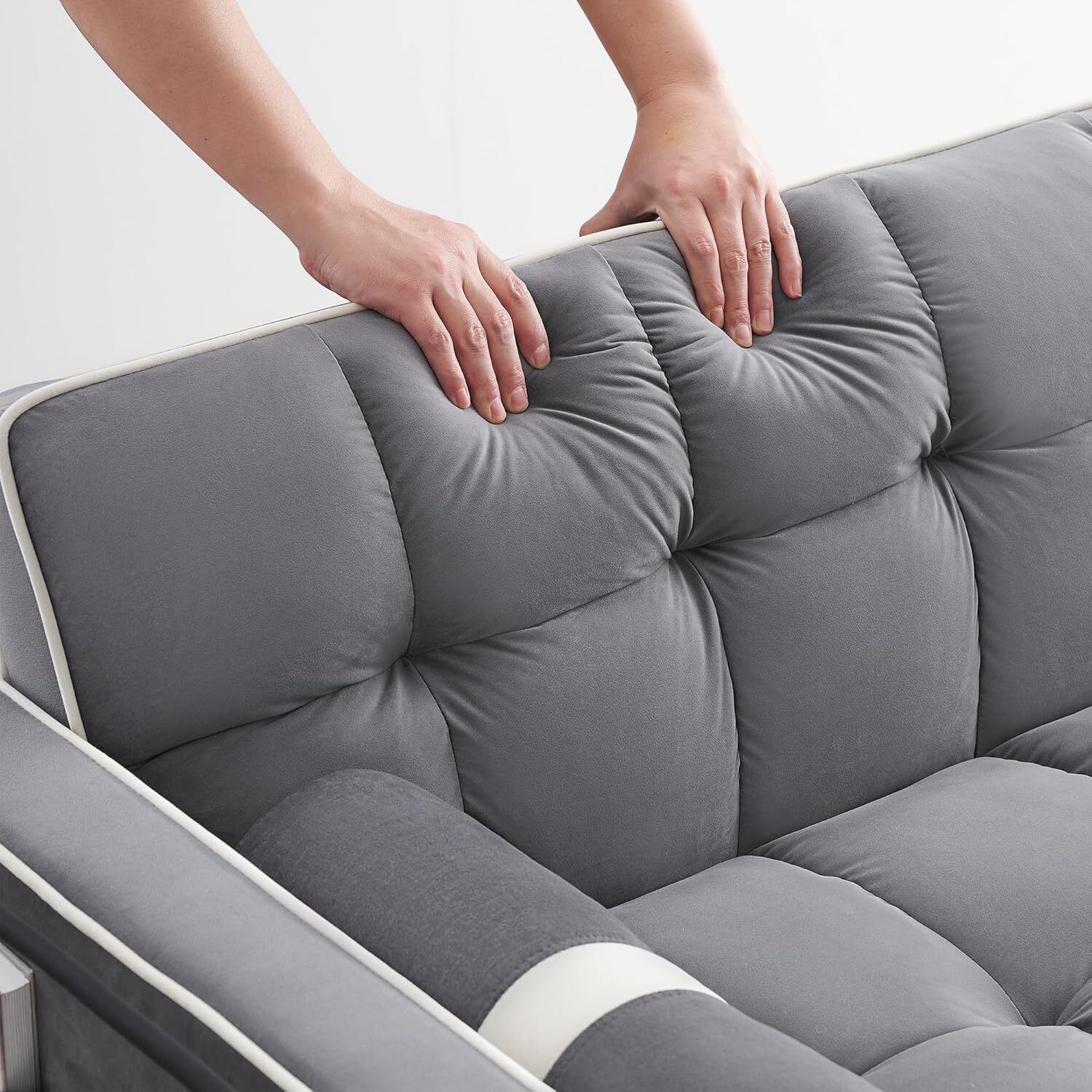 как выглядит 3 in 1 Convertible Sleeper Sofa Bed Modern Velvet Pullout Bed with Phone Holder фото