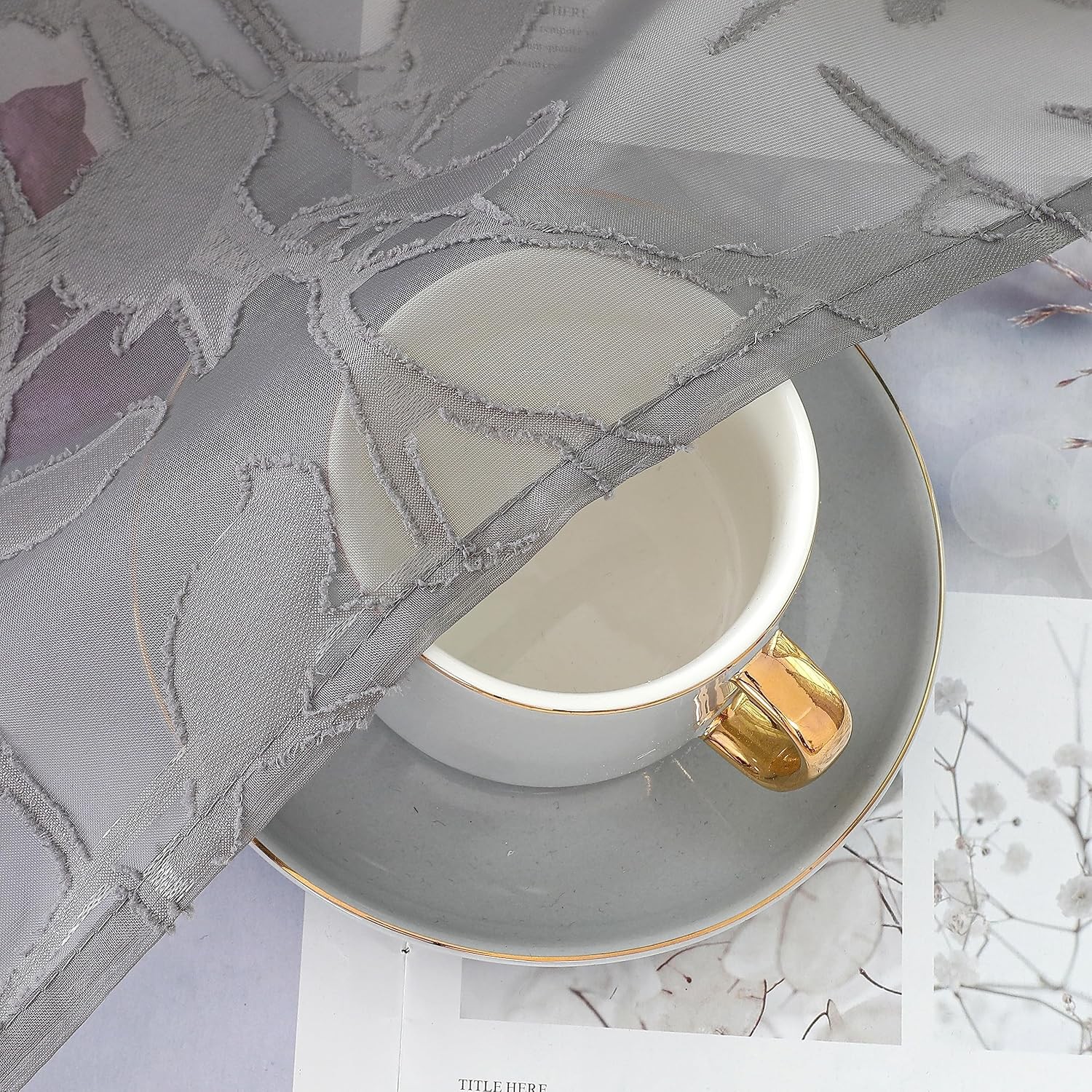 OVZME Anji Sheer Grey Curtains 63 Inches Long, 38W x 63L Pack of 2 ,