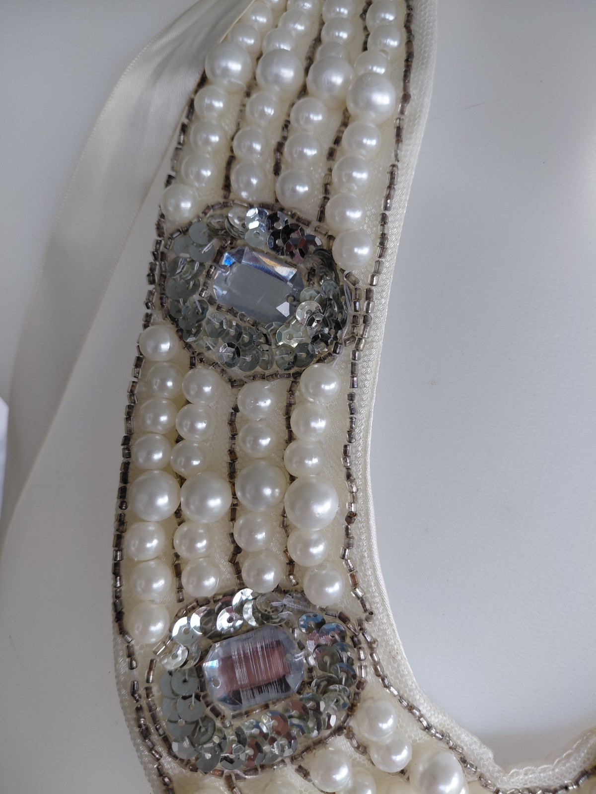 как выглядит Vintage BIB COLLAR NECKLACE Faux Pearls, Lg Rhinestones фото