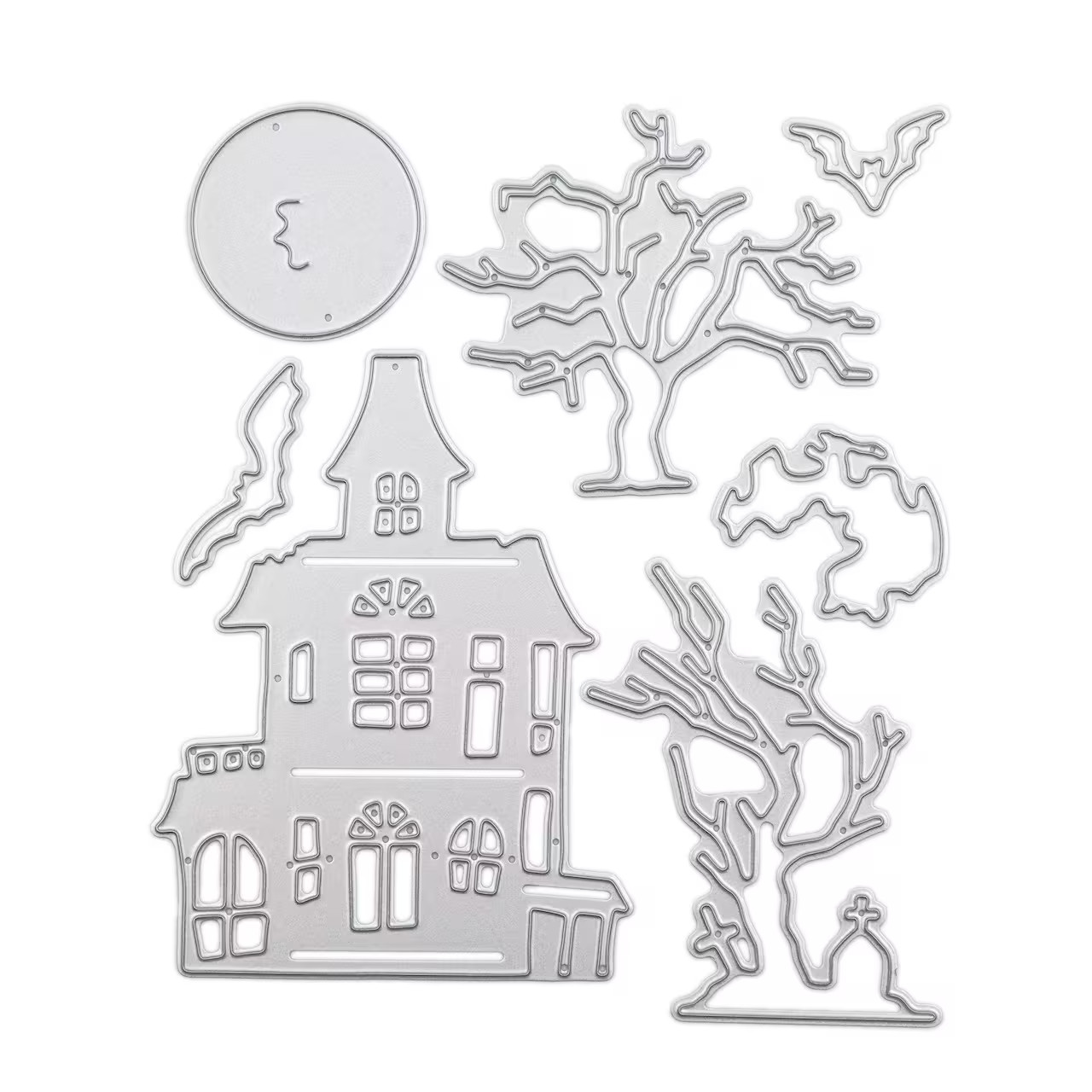 Halloween Haunted House Scene Thin Metal Die Set 782219 by Recollections NEW
