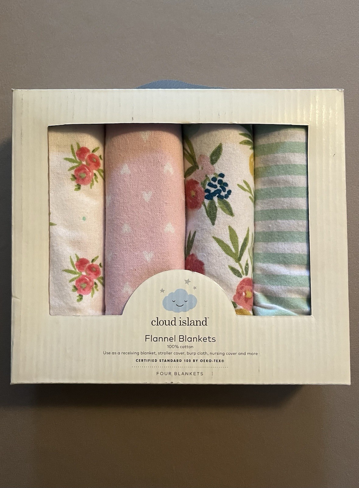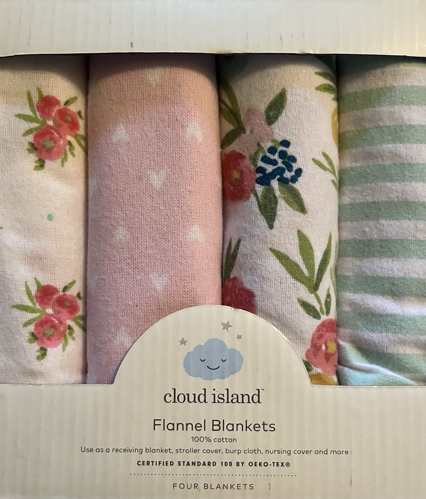 4 Pack Flannel Baby Girls 100 Cotton Receiving Blankets, 30 X 30 , New In Box
