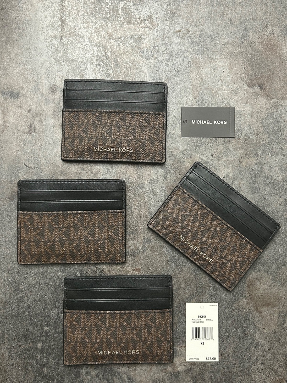 Michael Kors Men's Cooper Tall Card Case Wallet Credit Card Brown Signature