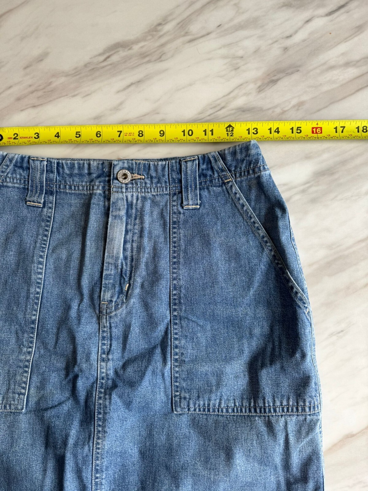 как выглядит Vintage Y2K Old Navy Denim Blue Jeans Midi Skirt Back Slit Flap Pocket XS Pencil фото