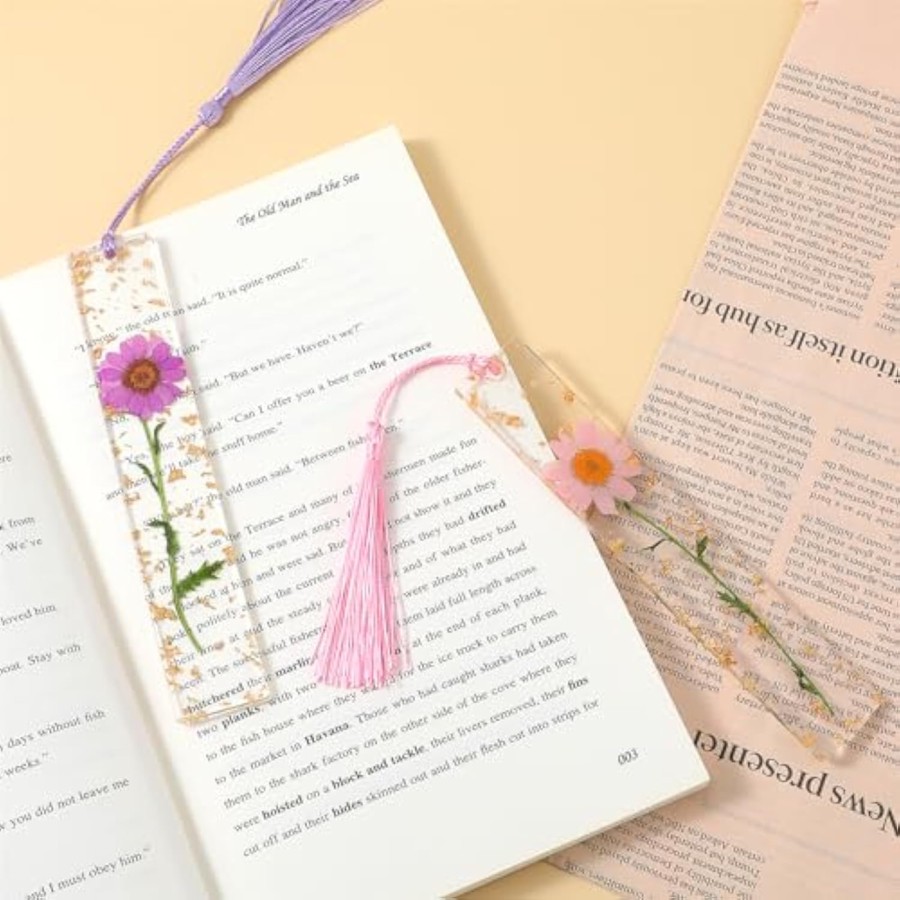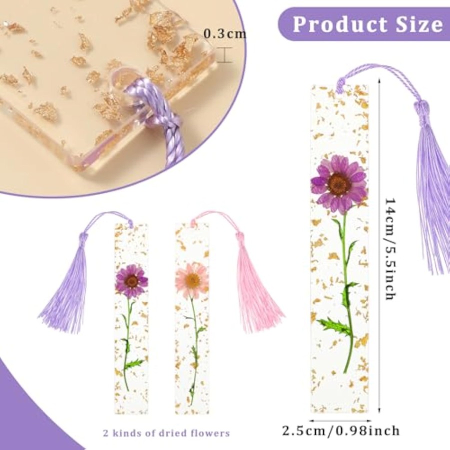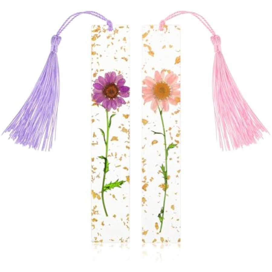 2 Pcs Daisy Bookmarks Resin Dried Flower Book Marks Clear Pressed Flor
