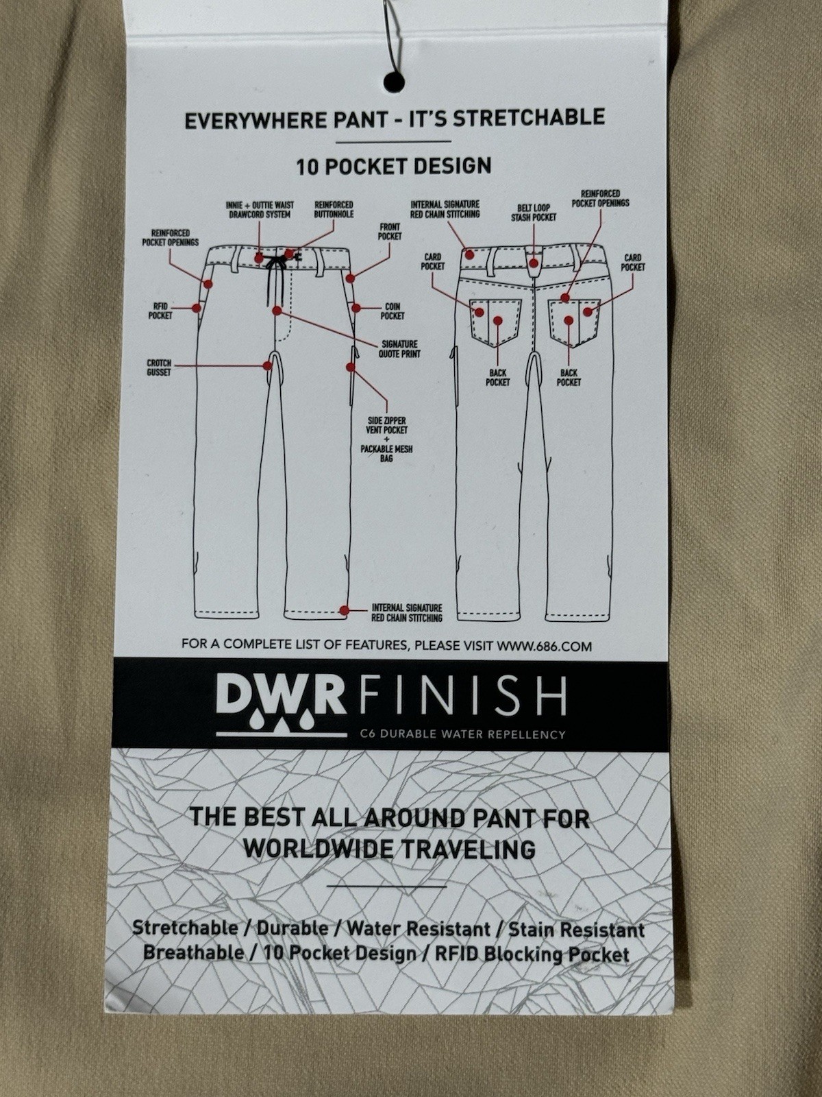 как выглядит 686 Everywhere Pants Performance Mens 32x31.5 Khaki Tactical 10 Pocket Nylon DWR фото