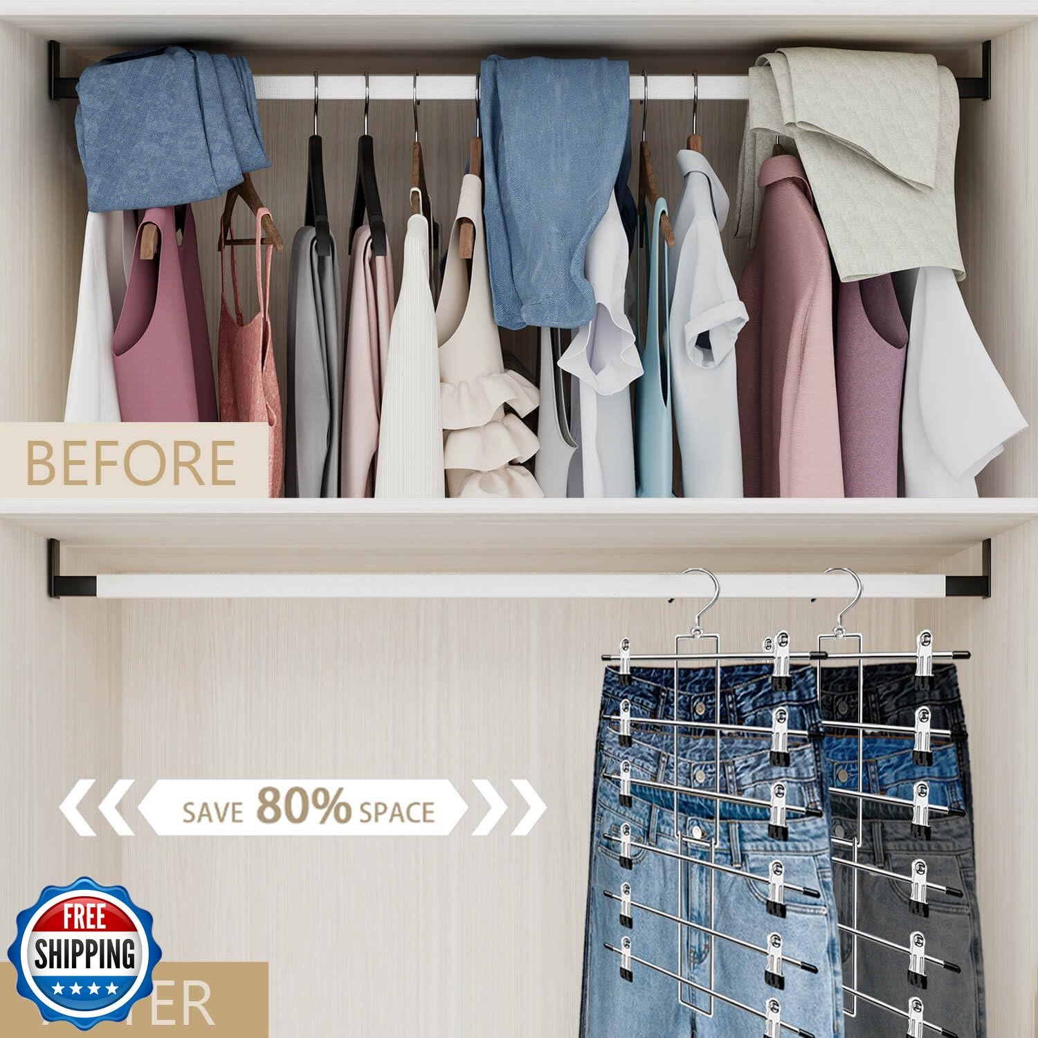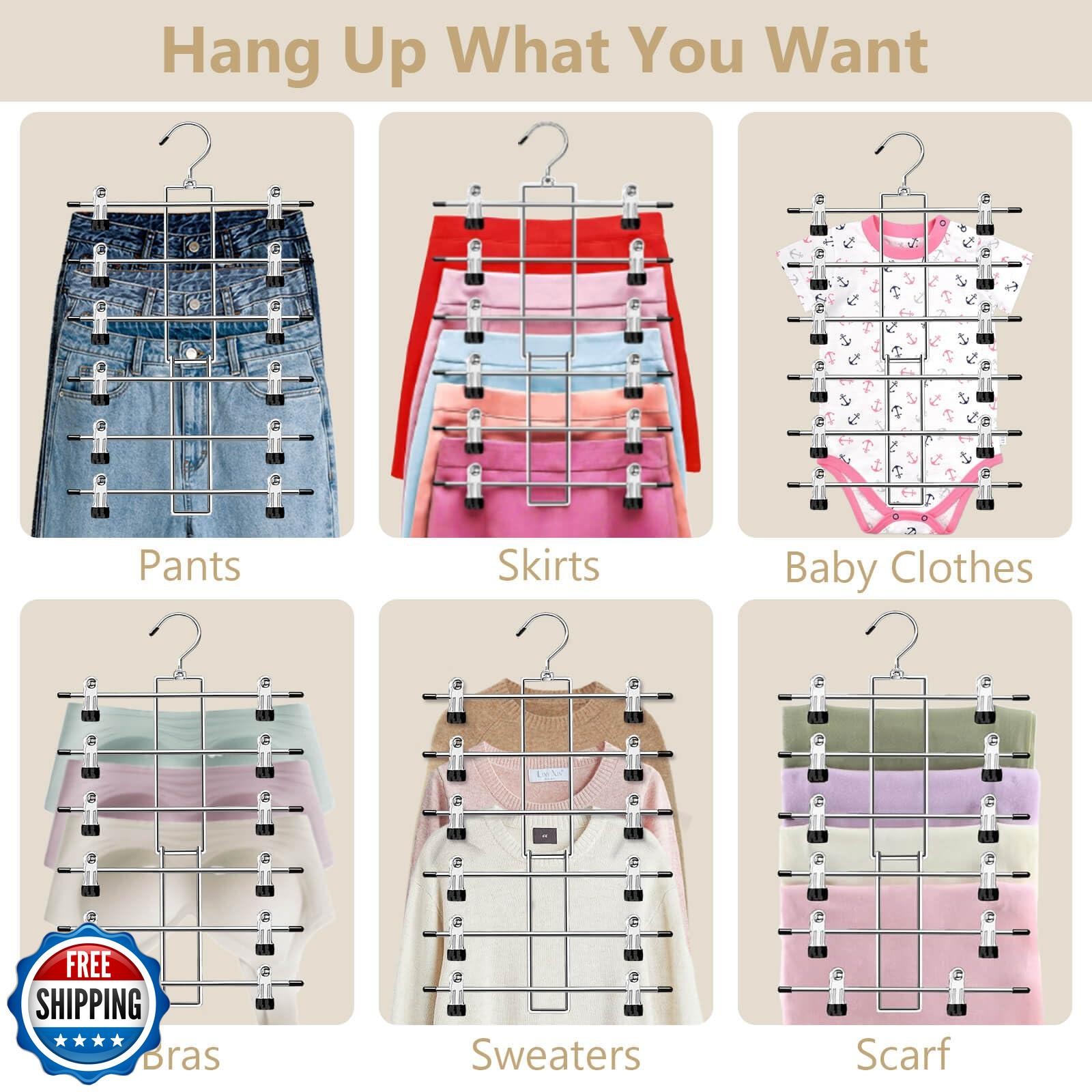 Pants Hangers with Clips,Space Saving Hanging Closet Organizer-6 Tiers Skirt
