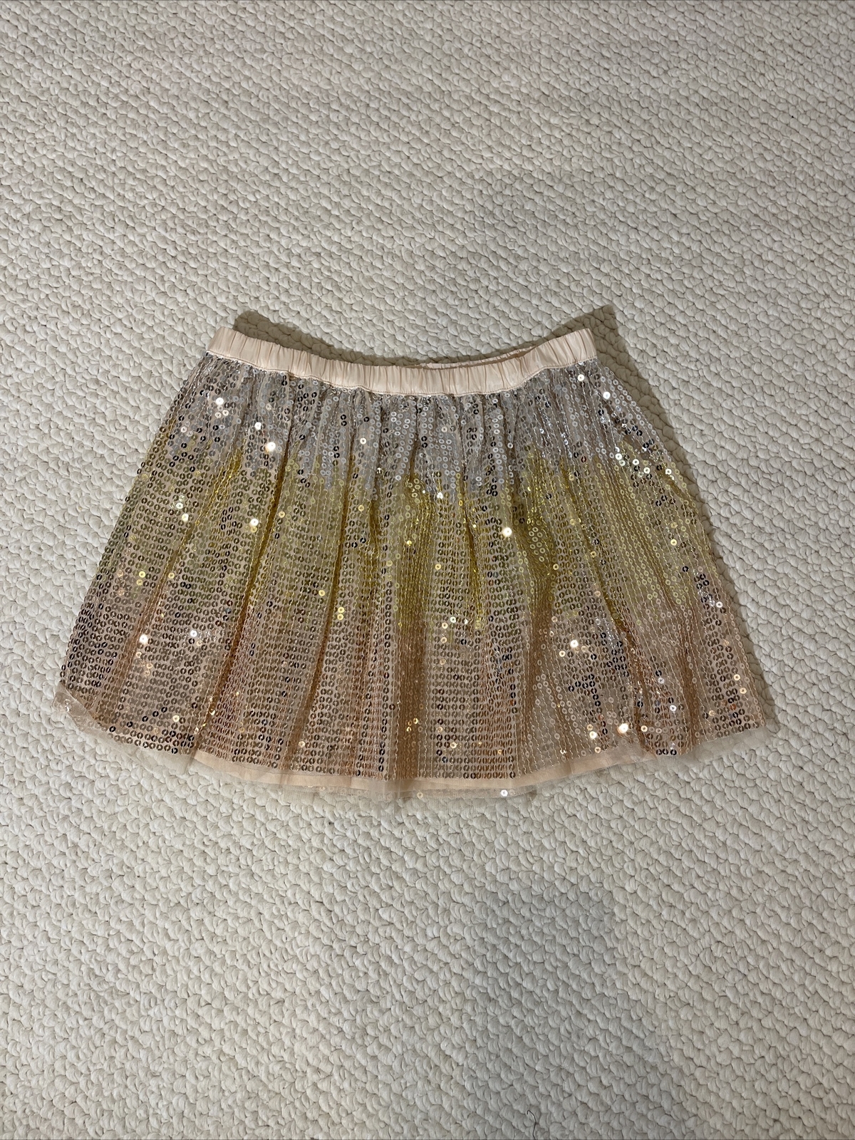 как выглядит Cat Jack Girls Gold Sequin Mini Skirt Size L 10/12 Flared Swing Kids New фото