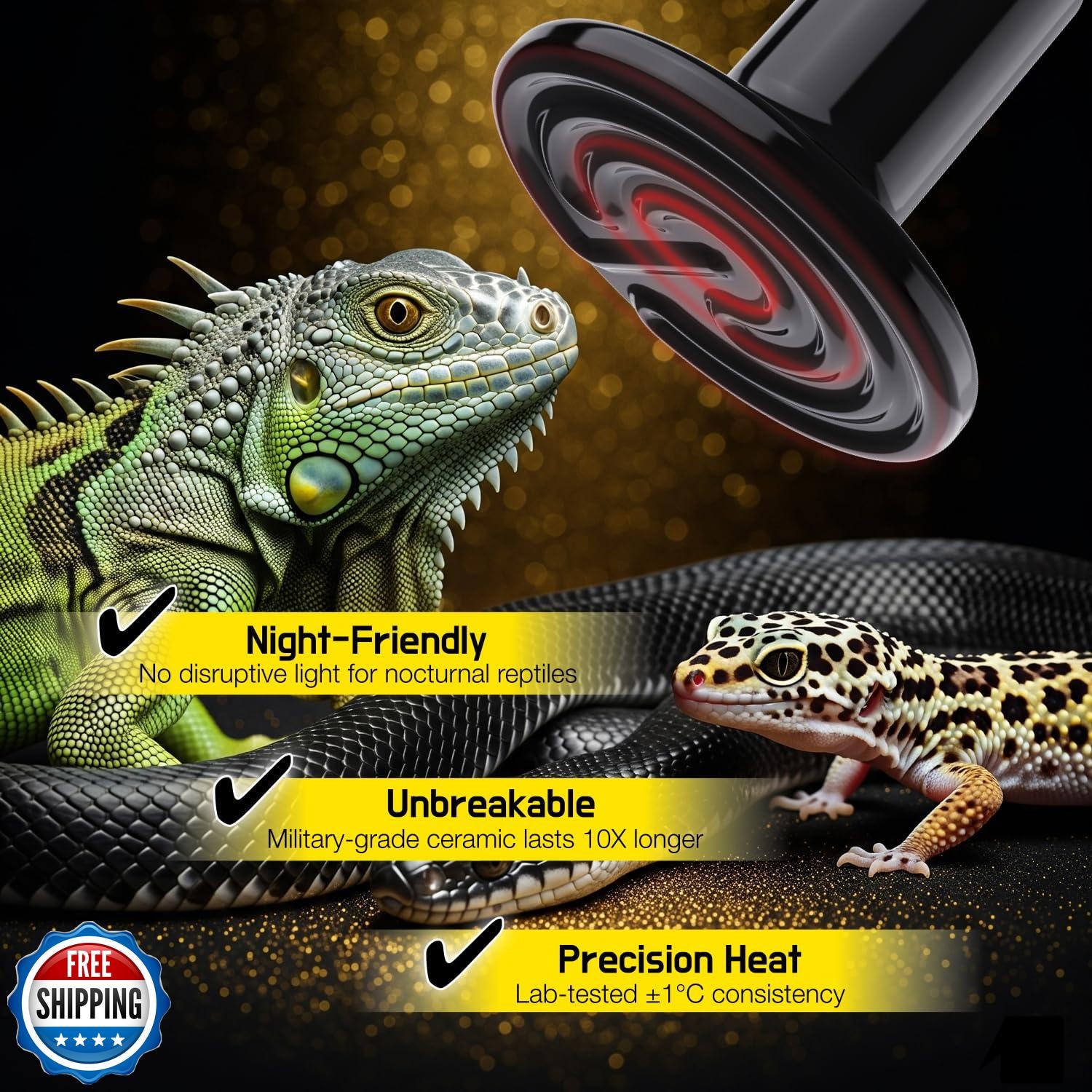 Reptile Heat Lamp, 150W Ceramic Heat Emitter for Bearded Dragon, Snake, Turtl
