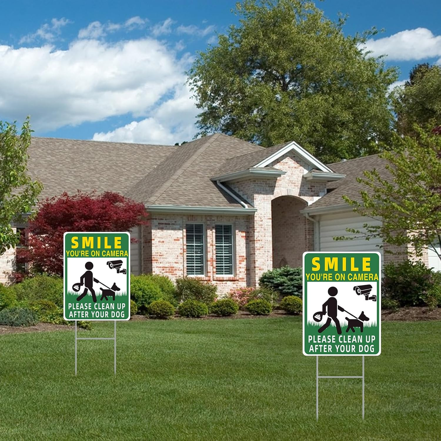 Clean up after Your Dog Signs, 2-Pack 13X10 Double-Sided H-Stake Metal Stakes