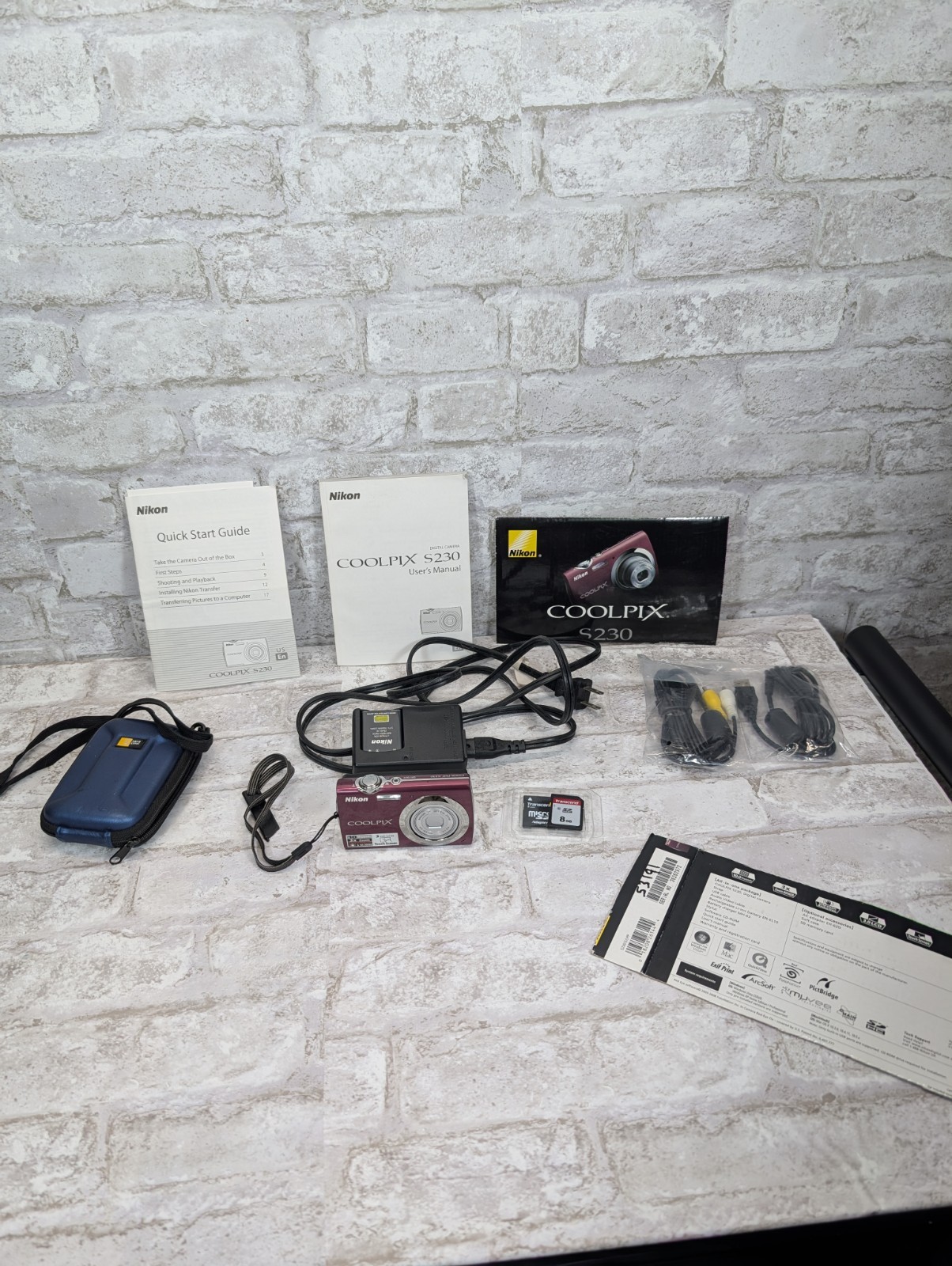 Nikon Coolpix S230 Digital Camera Plum Battery Charger Battery SDCard Tested
