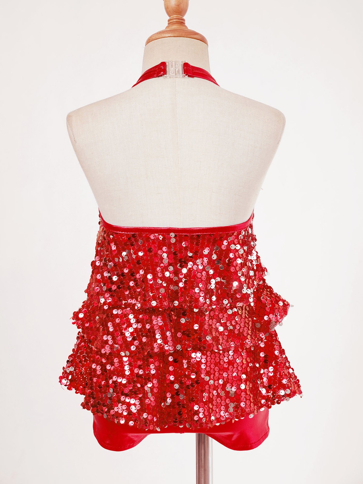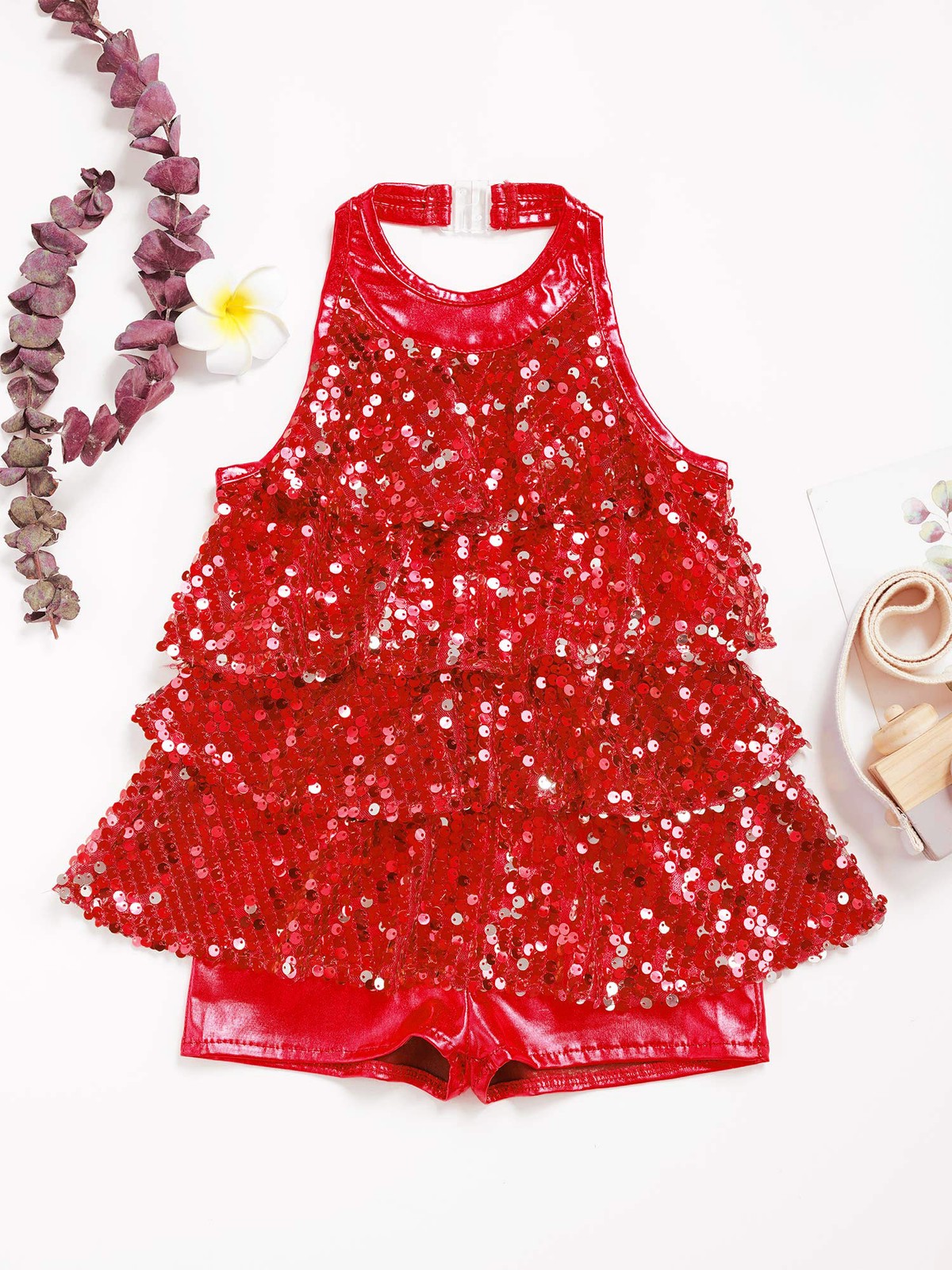 Children Girls Costume Dancing Dress Sequins Unitard Dancewear Leotard Tiered