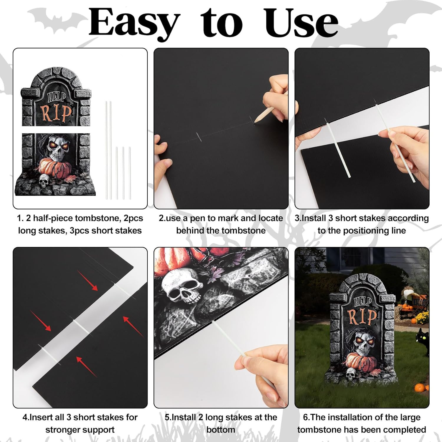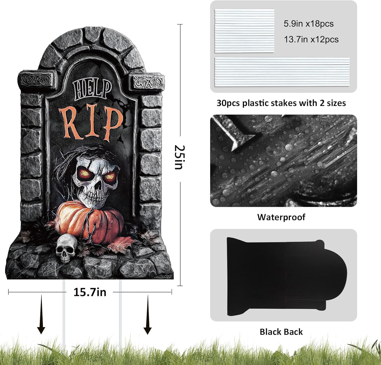 25 Tombstones Halloween Outdoor Decor, 6 Pack Large Graveyard Decorations for H