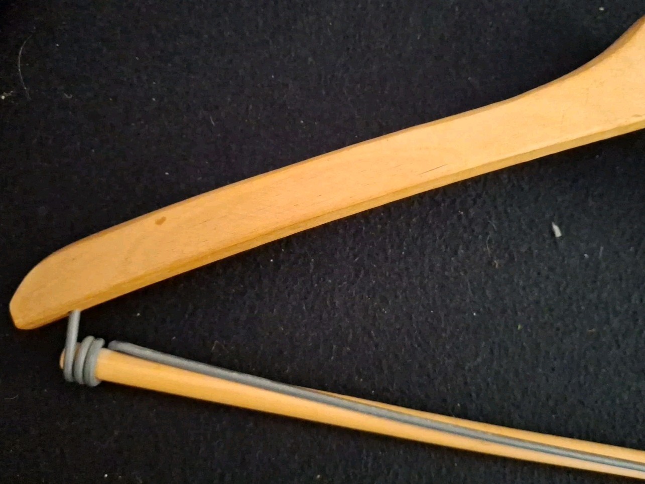 как выглядит Vintage Lot - 2 Wooden Clothes Hangers - Suits, Pants, Coats фото