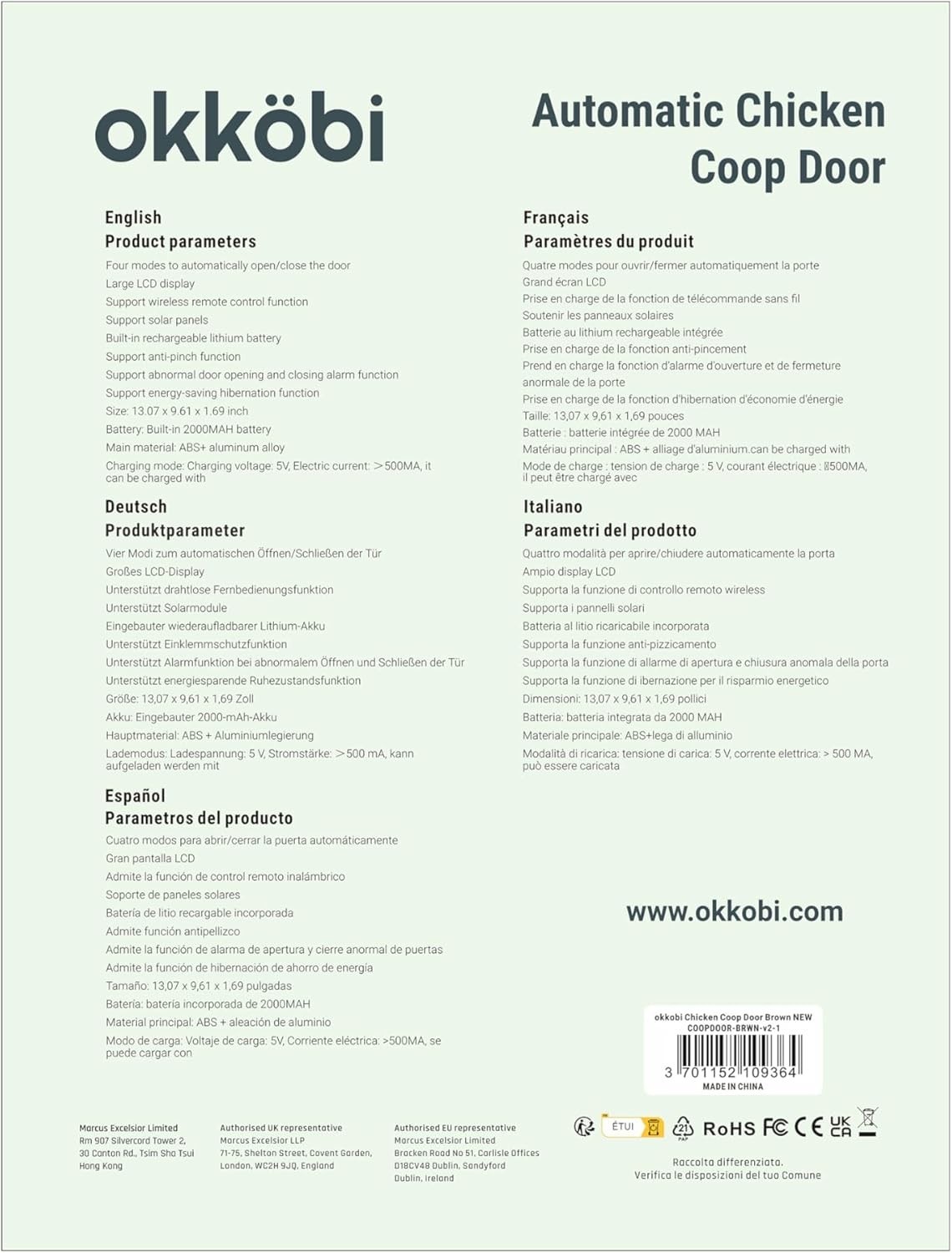 Solar Powered Automatic Chicken Coop Door with Timer/Light Sensor Modes