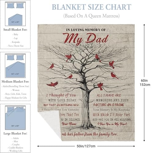 Memorial Gifts for Loss of Dad, Bereavement Gifts Blanket 60x50, Loss of