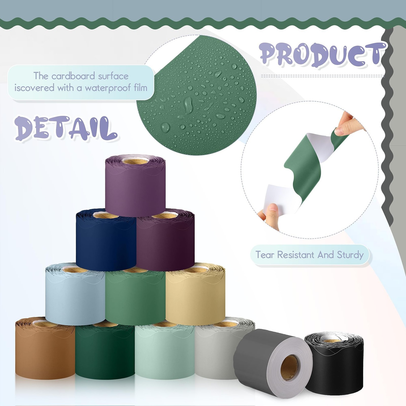 Ctosree 12 Roll 630 ft Colorful Bulletin Board Borders Bulk Scalloped Rolled ...