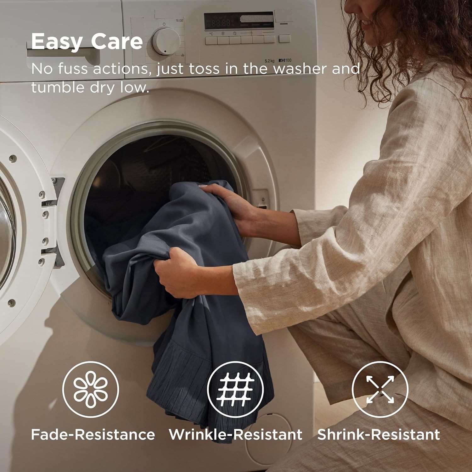 Queen Sheet Set 4-Piece Soft Cooling Microfiber Bedding Dark Grey