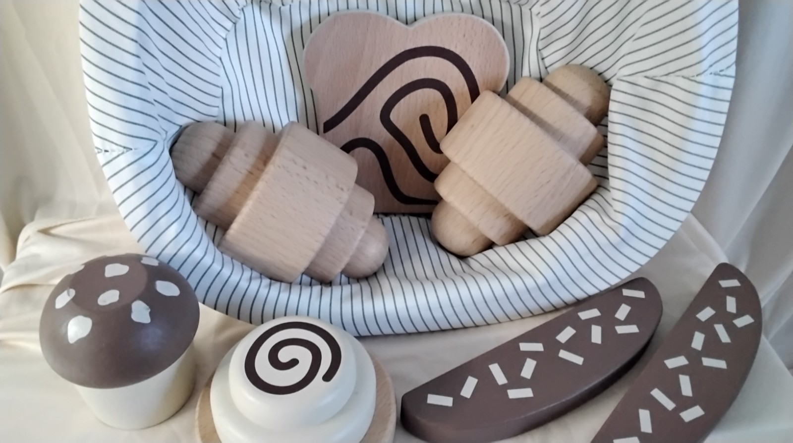 как выглядит Hearth and Hand with Magnolia Toy Baked Goods Wood Play Food Set Bread Basket фото