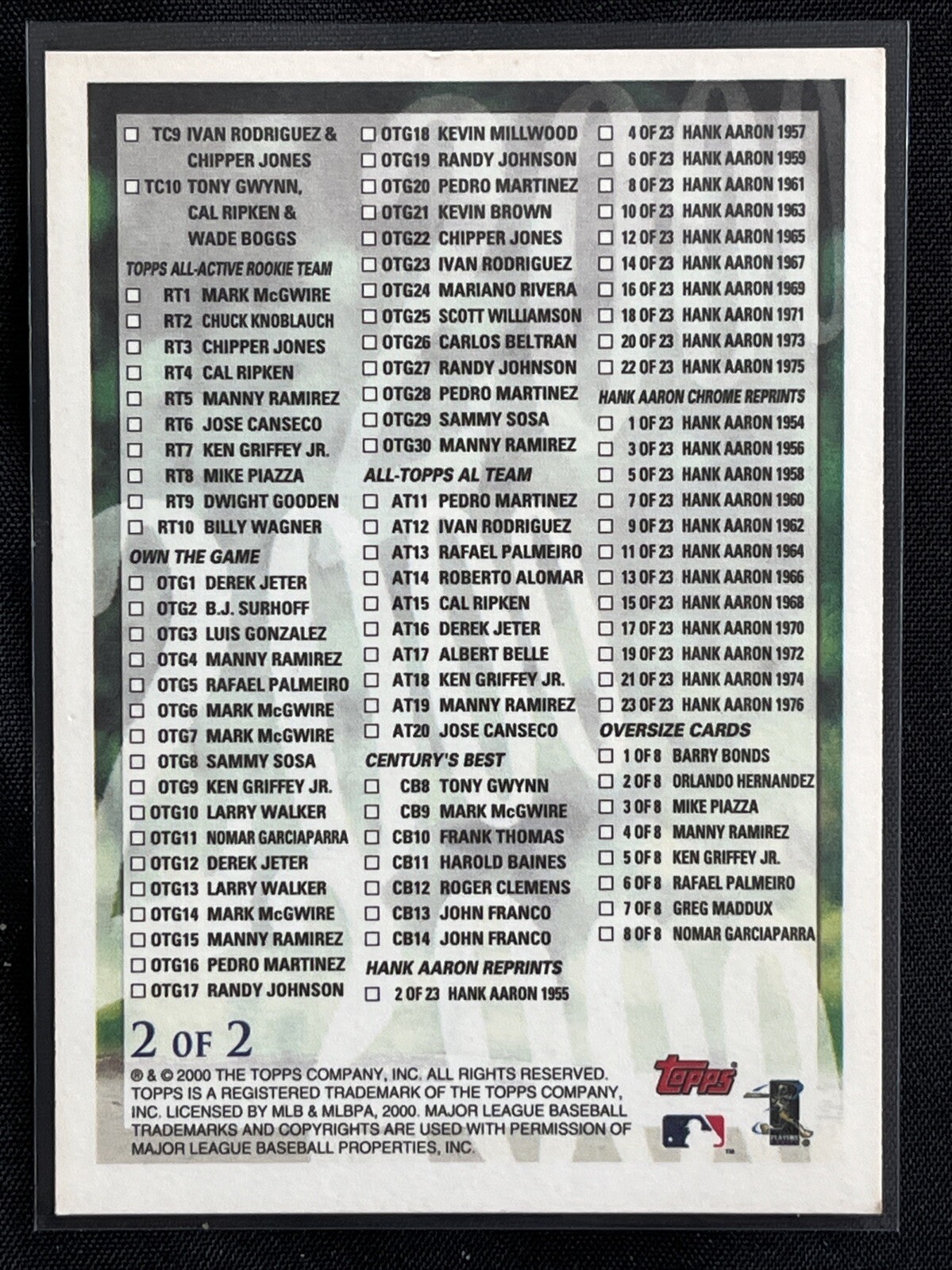 Player/Athlete: Barry Bonds, Derek Jeter, Ken Griffey Jr, Checklist 2 of 2: 442-479 and Inserts