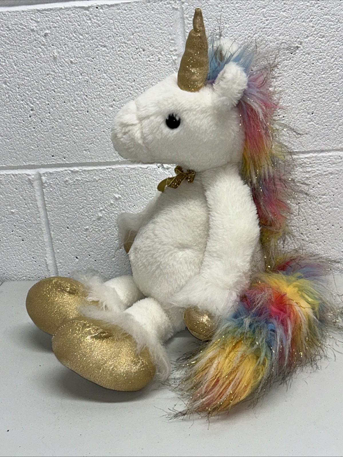 FAO Schwarz Dreamies White Unicorn Rainbow Sparkle Stuffed Animal Plush Toy P3