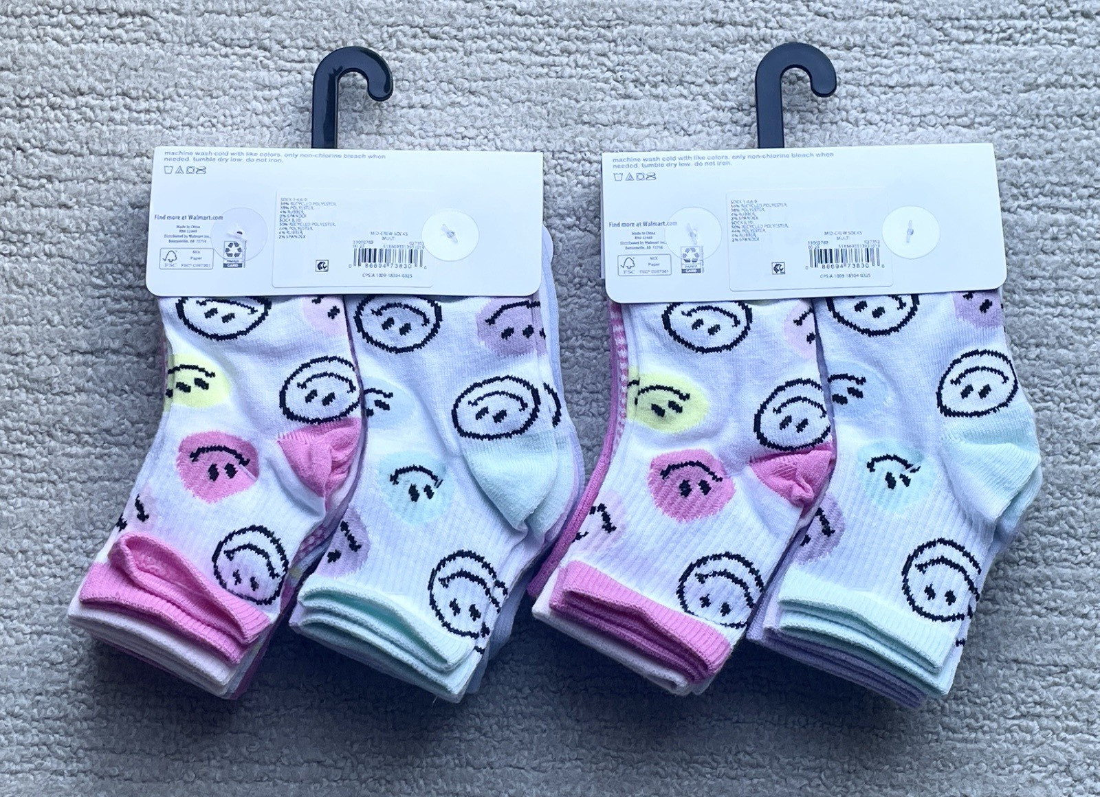 как выглядит New 2 Packs Girls WONDER NATION Size S 6-10 1/2 Assorted Colors Mid-Crew Socks фото
