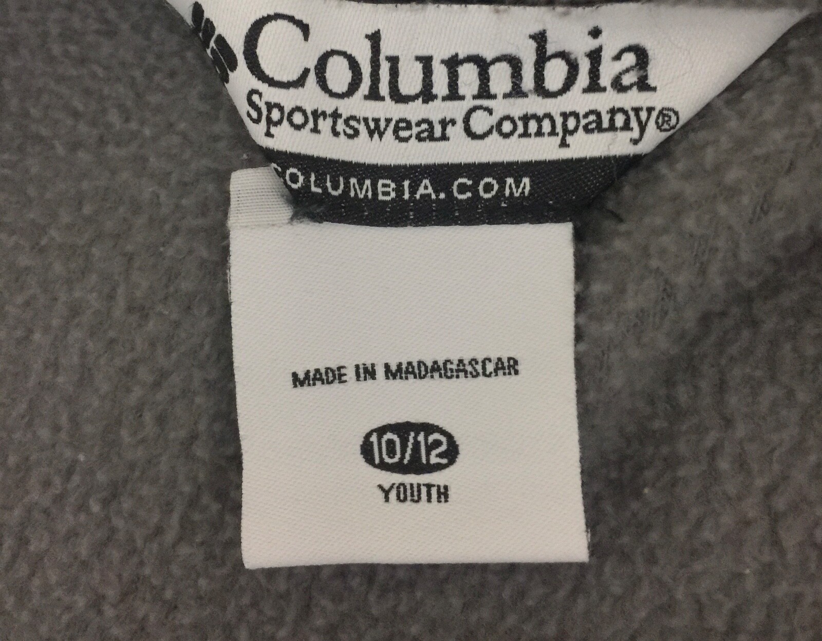 Columbia Youth Gray Black Fleece Zip Front Logo Jacket Size 10/12 Zip Pockets