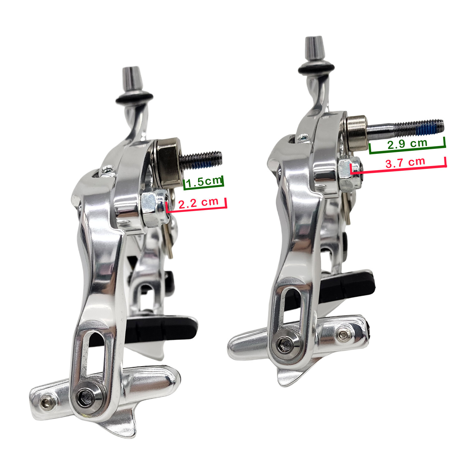 TEKTRO R559 Caliper Brake Set Long Reach 53-73mm Recessed Nut , Silver