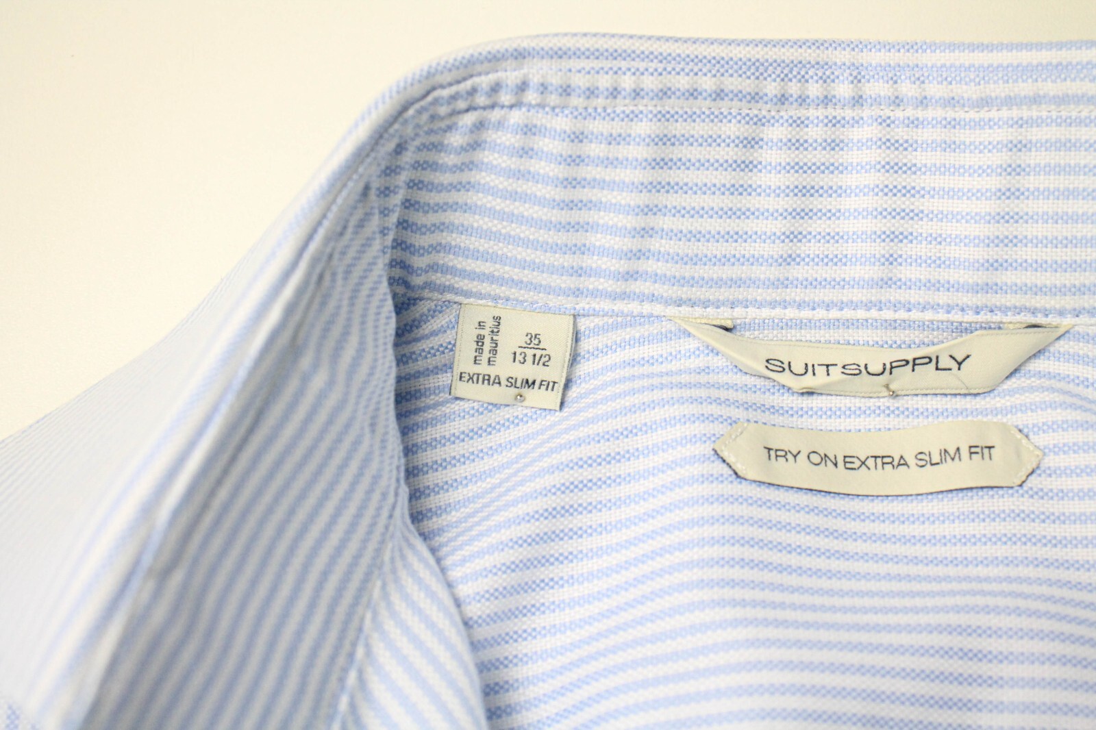 SUITSUPPLY Try On Extra Slim Fit Formal Shirt Men's 35 / 13 1/2 Pinstripe Blue