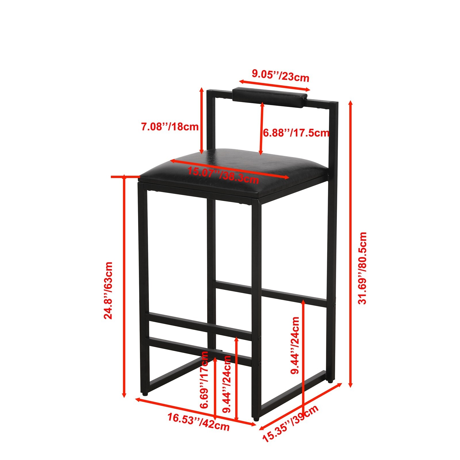 Set of 2 Bar Stools Counter Height PU Leather Bar Chairs w/ Backrest Footrest