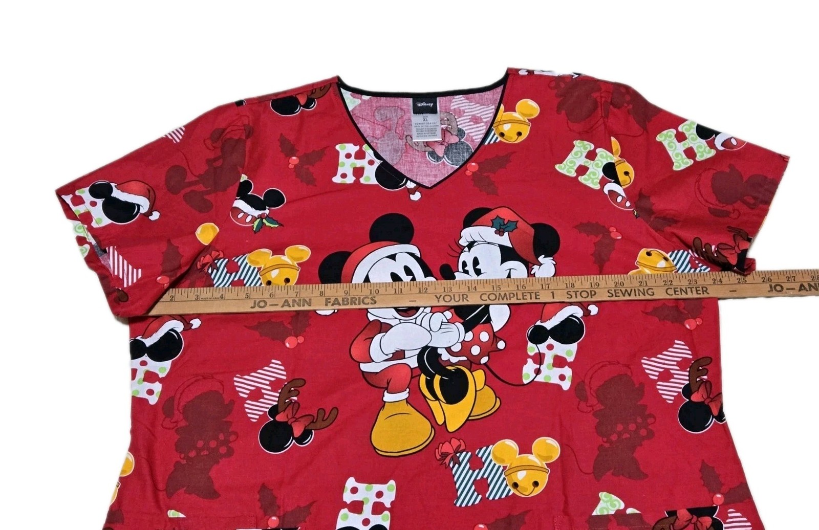 как выглядит Disney Mickey Minnie Christmas Scrub Top Womens XL фото