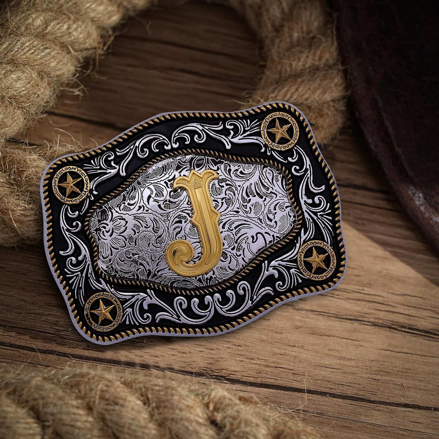 Western Belt Buckle Initial Letters ABCDJMR to Z Large Gold Cowboy Belt Buckl...
