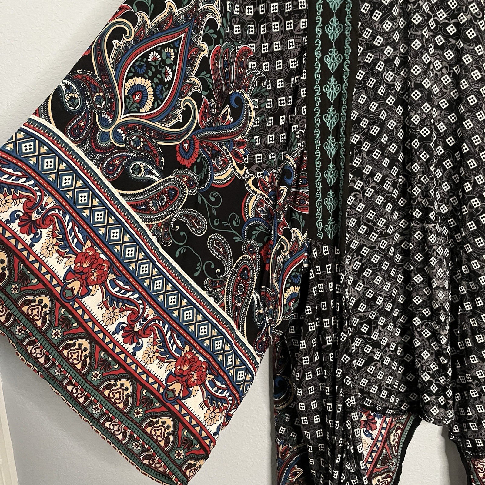 Flying Tomato Women's Printed Paisley Embroidered Rayon Kimono Cardigan Boho S