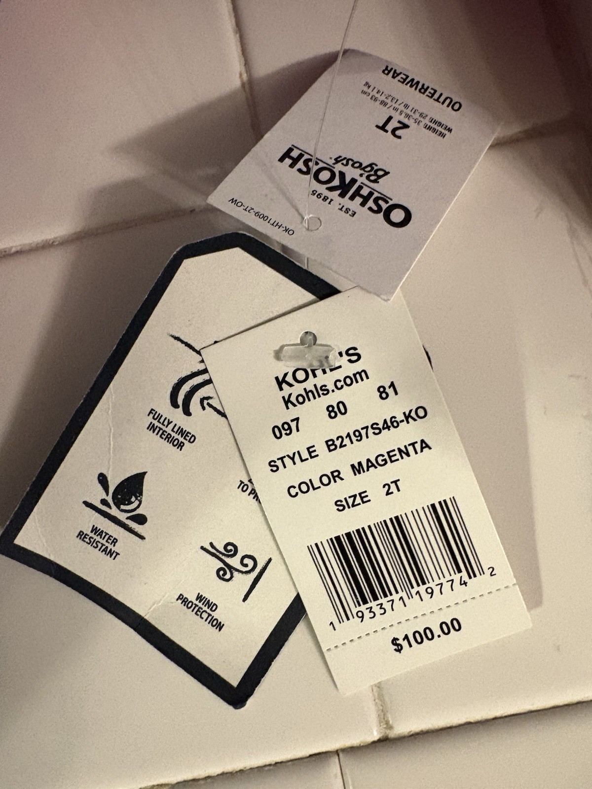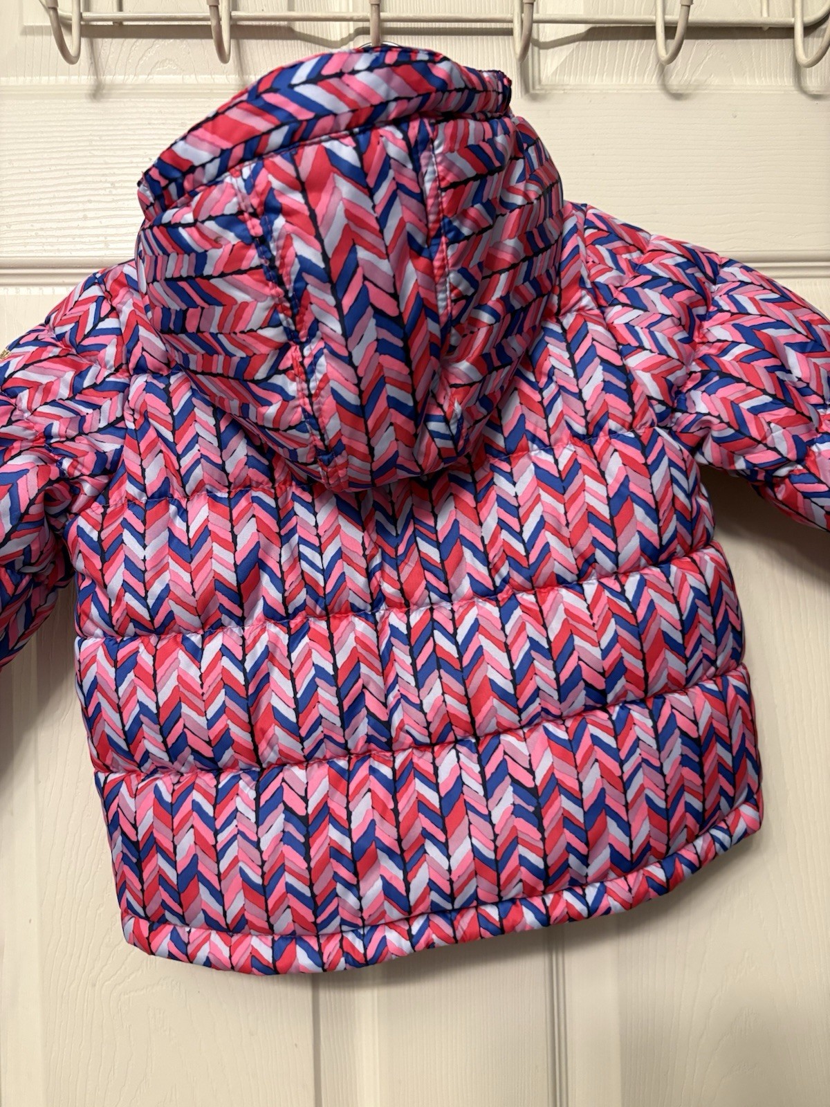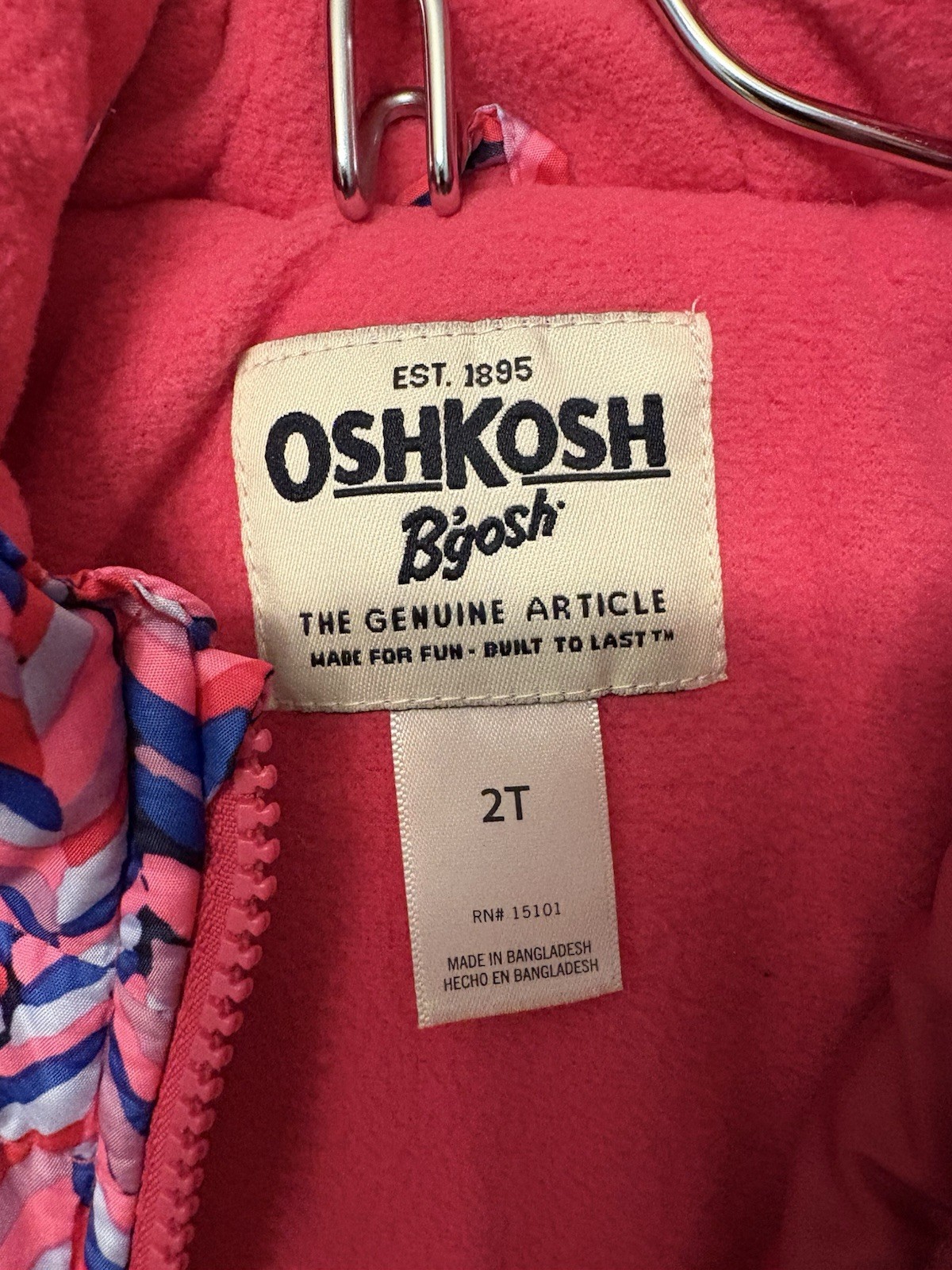 как выглядит NWT Oshkosh B Gosh Pink and Purple Chevron Fleece Lined Puffer Jacket Size 2T фото