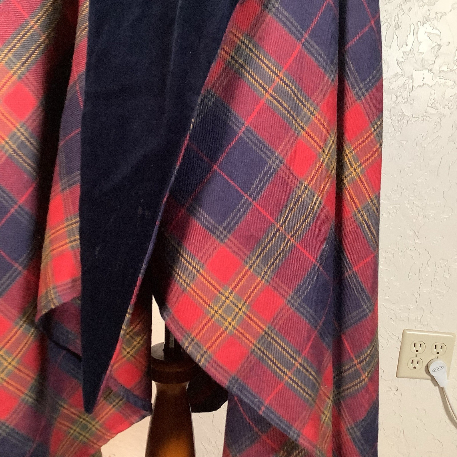 как выглядит Vintage Jimmy Hourihan Plaid Irish Wool Hooded Cape with Blue Velvet Hood OSFM фото
