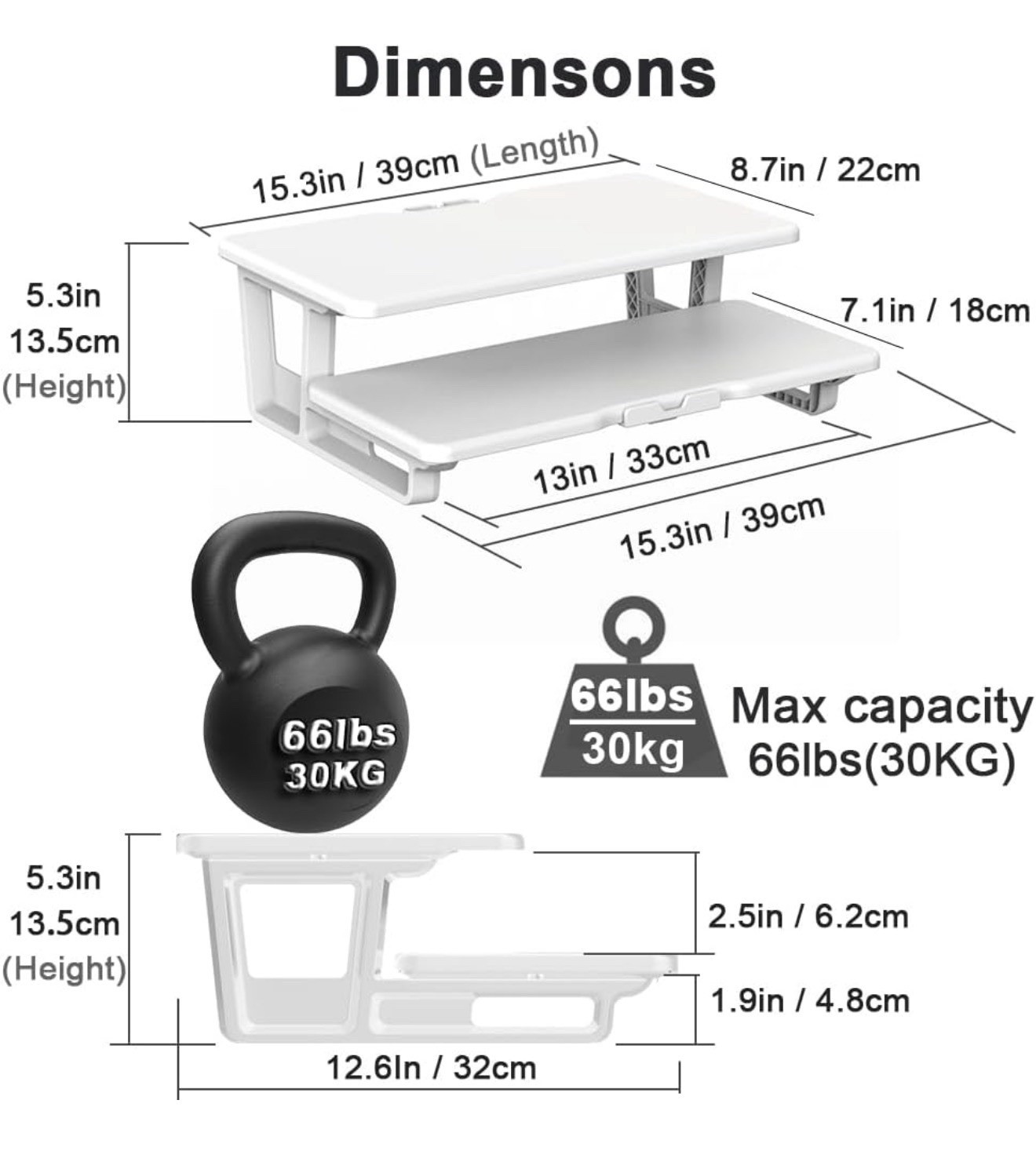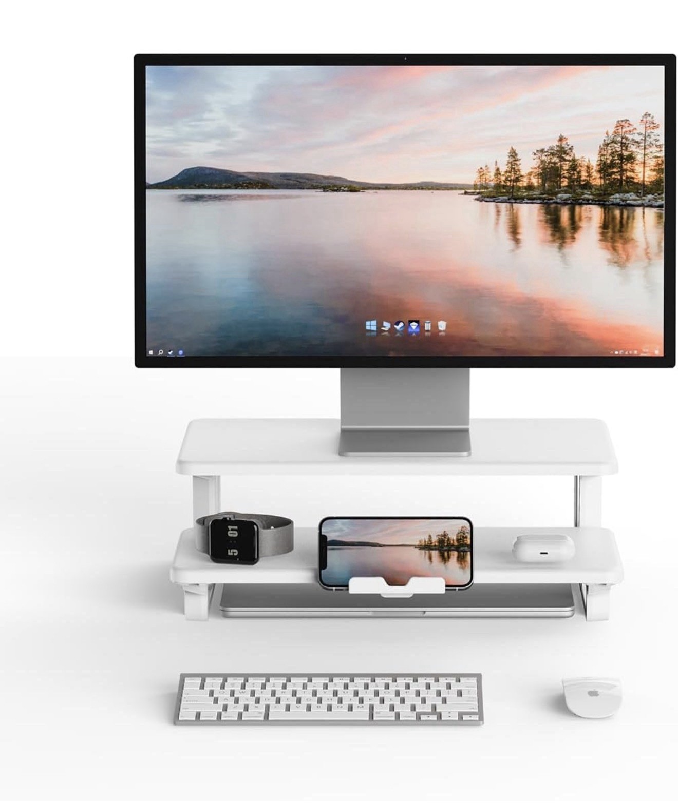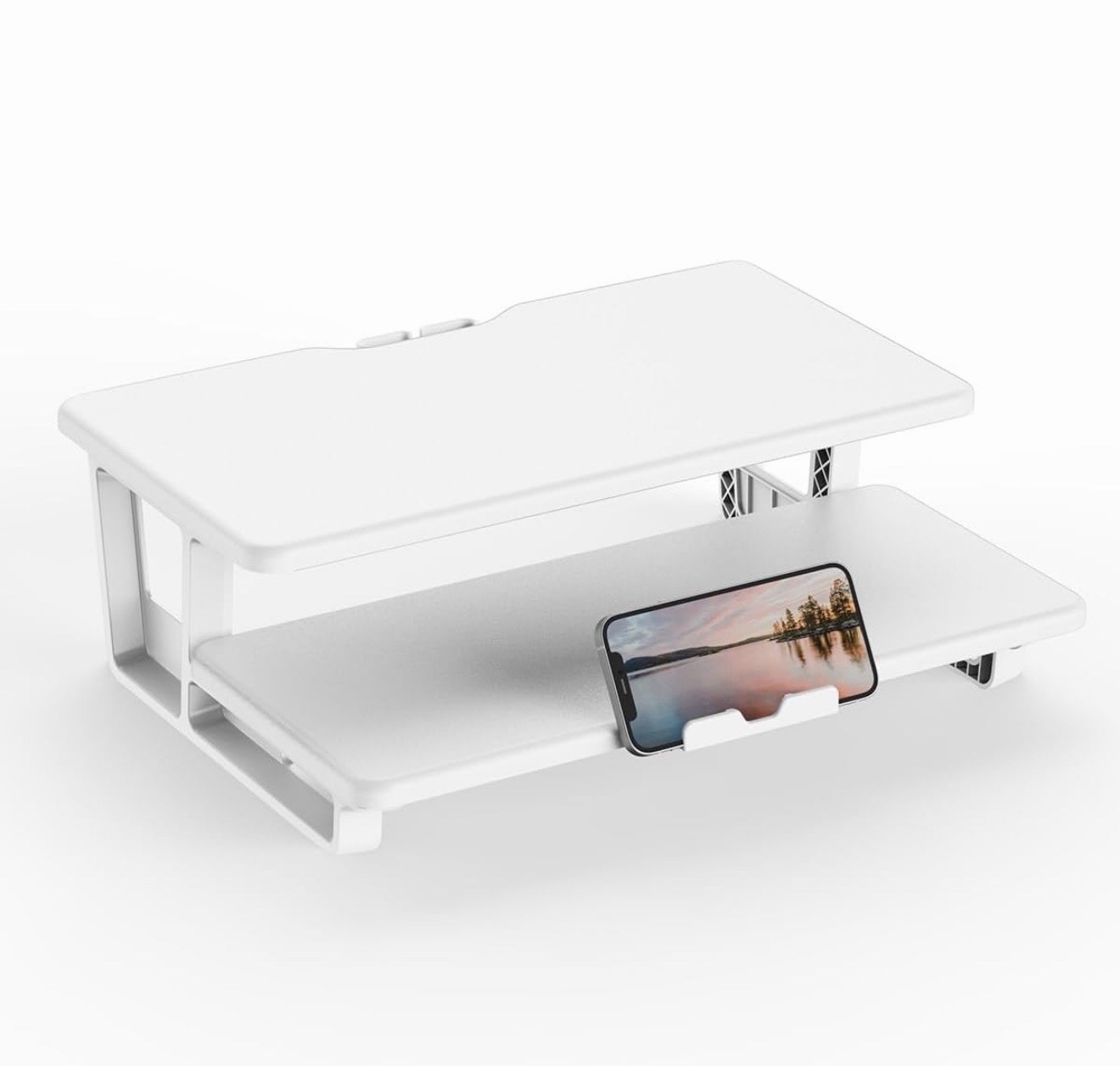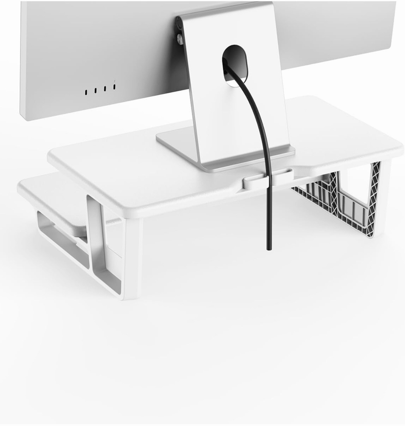 White Monitor Stand Riser 2 Tier, Monitor Stand for Desk With Phone/Cable Holder