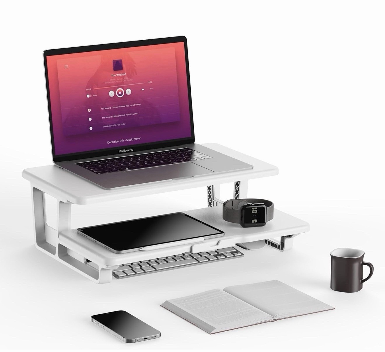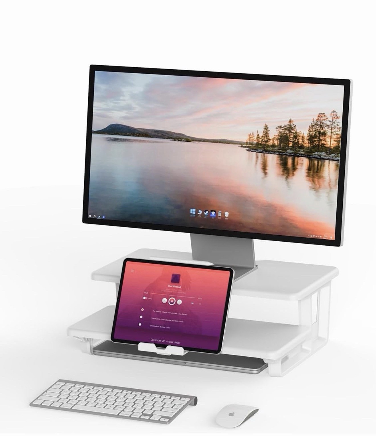 как выглядит White Monitor Stand Riser 2 Tier, Monitor Stand for Desk With Phone/Cable Holder фото