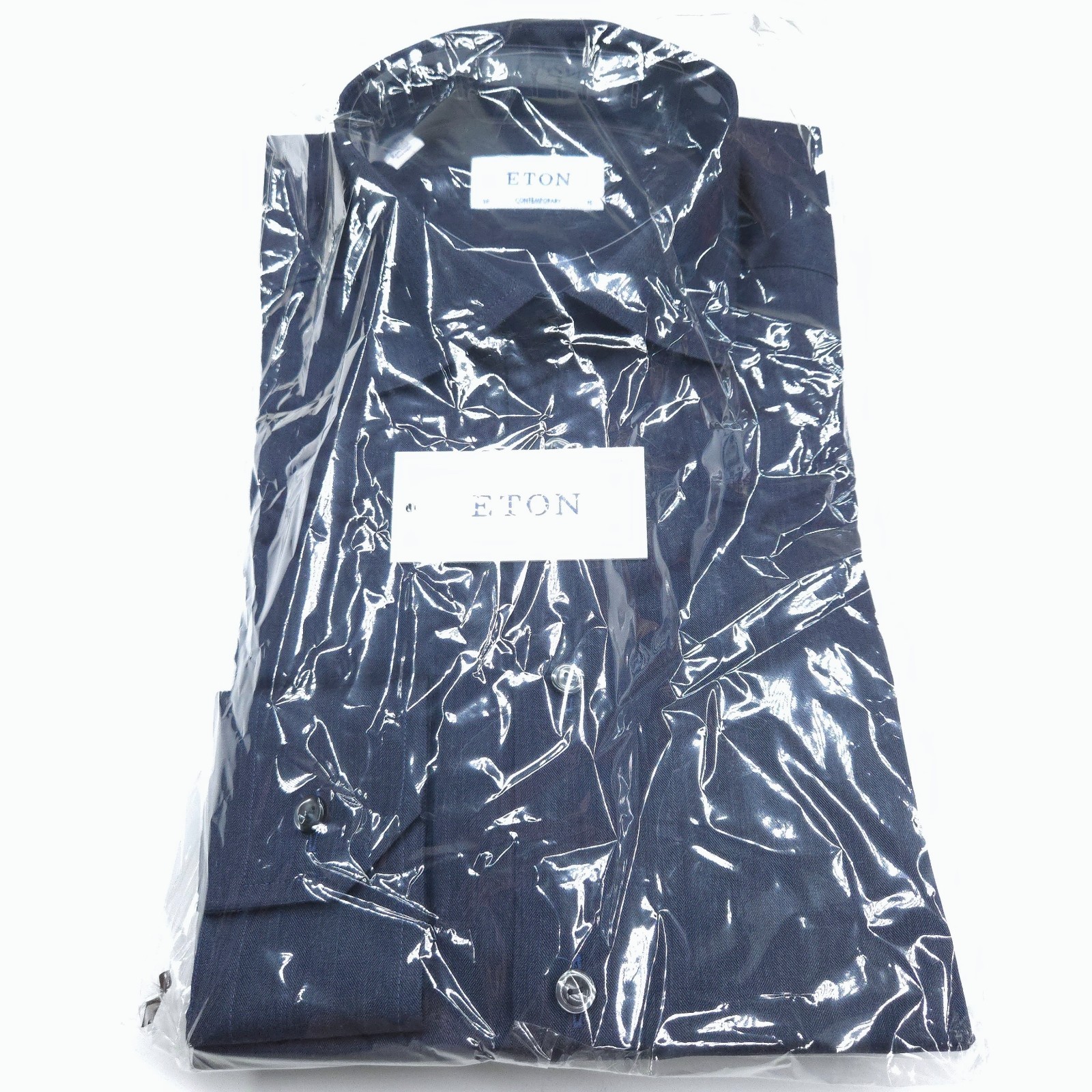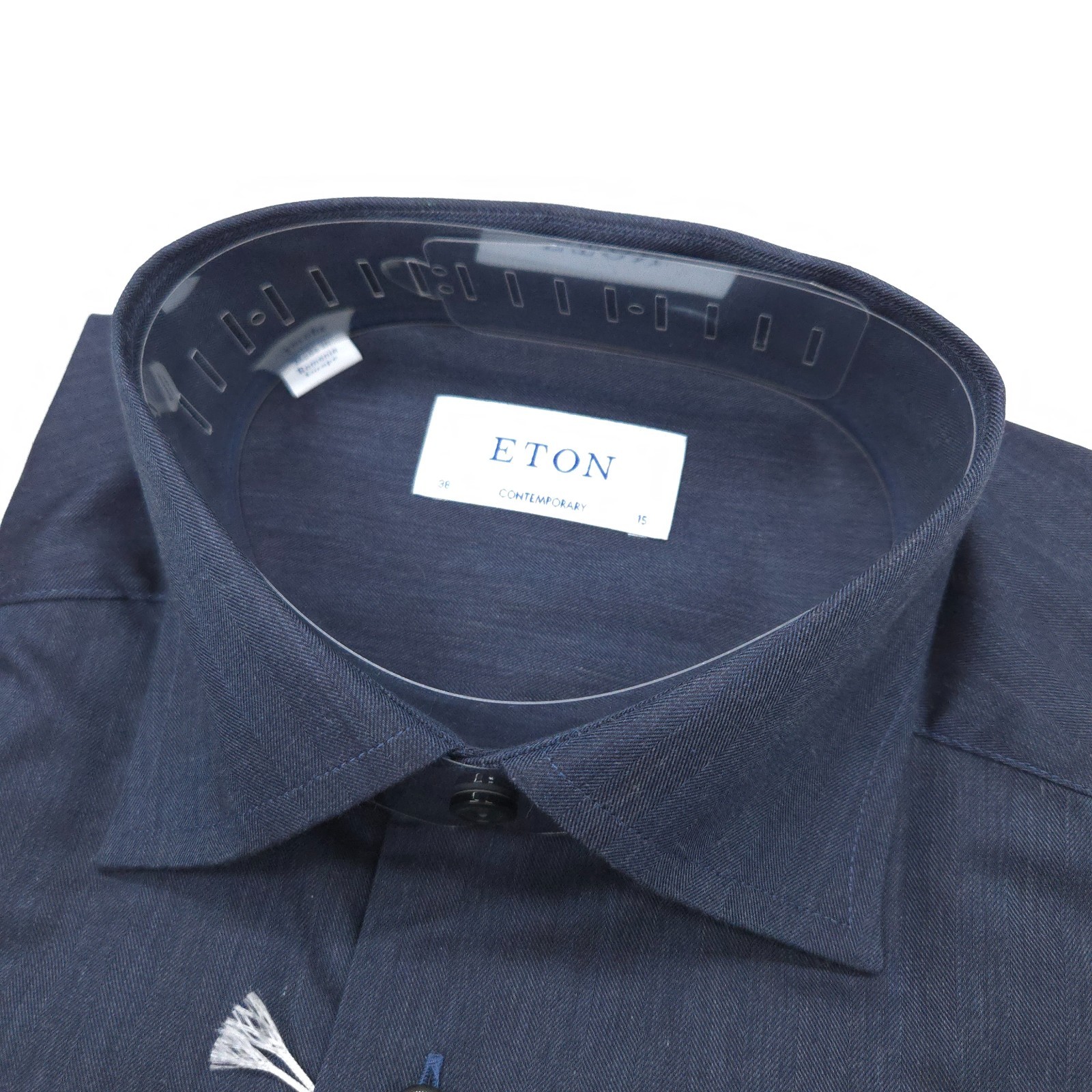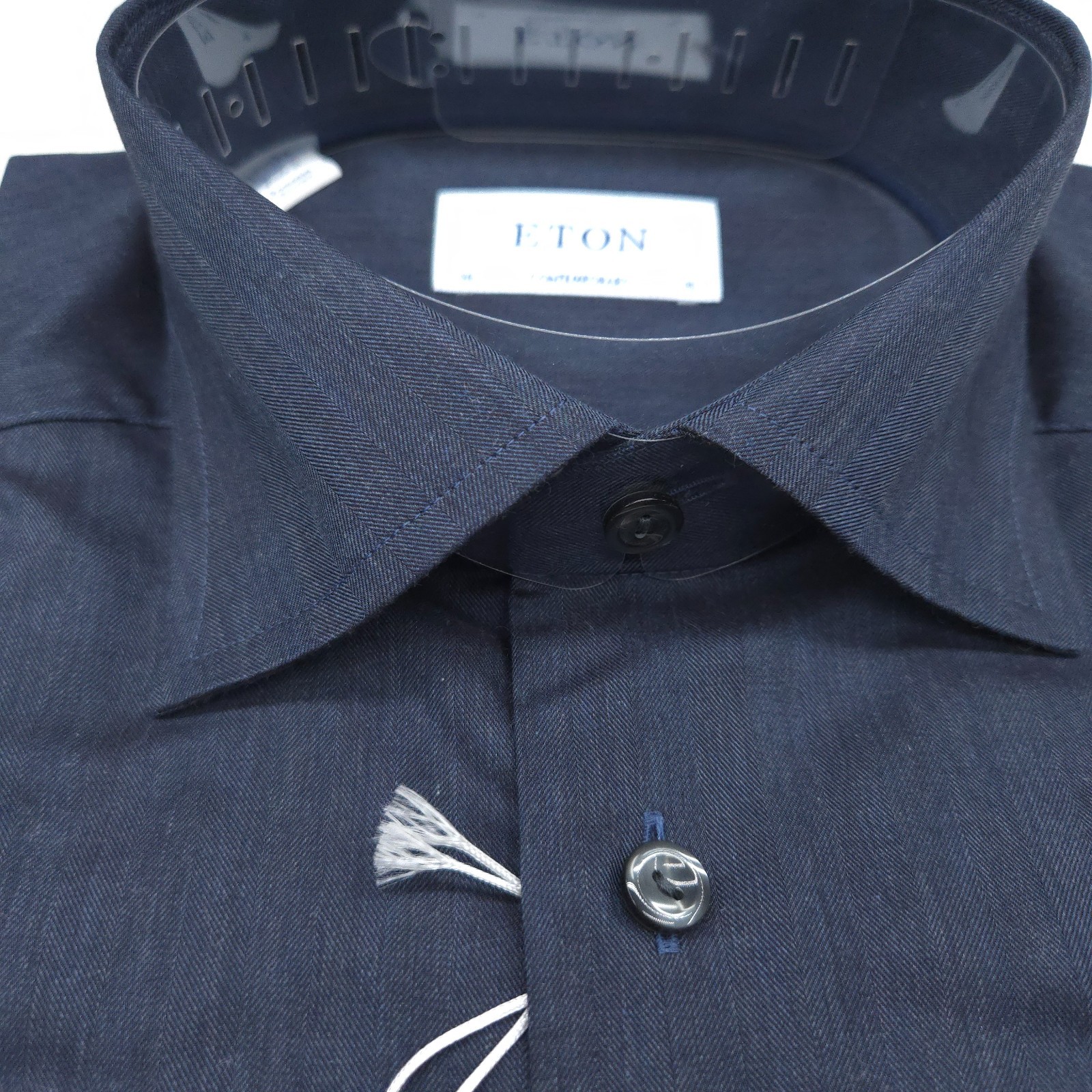 ETON DRESS SHIRT -15 35 36 NAVY BLUE -CONTEMPORARY SLIM -HERRINGBONE TWILL DENIM