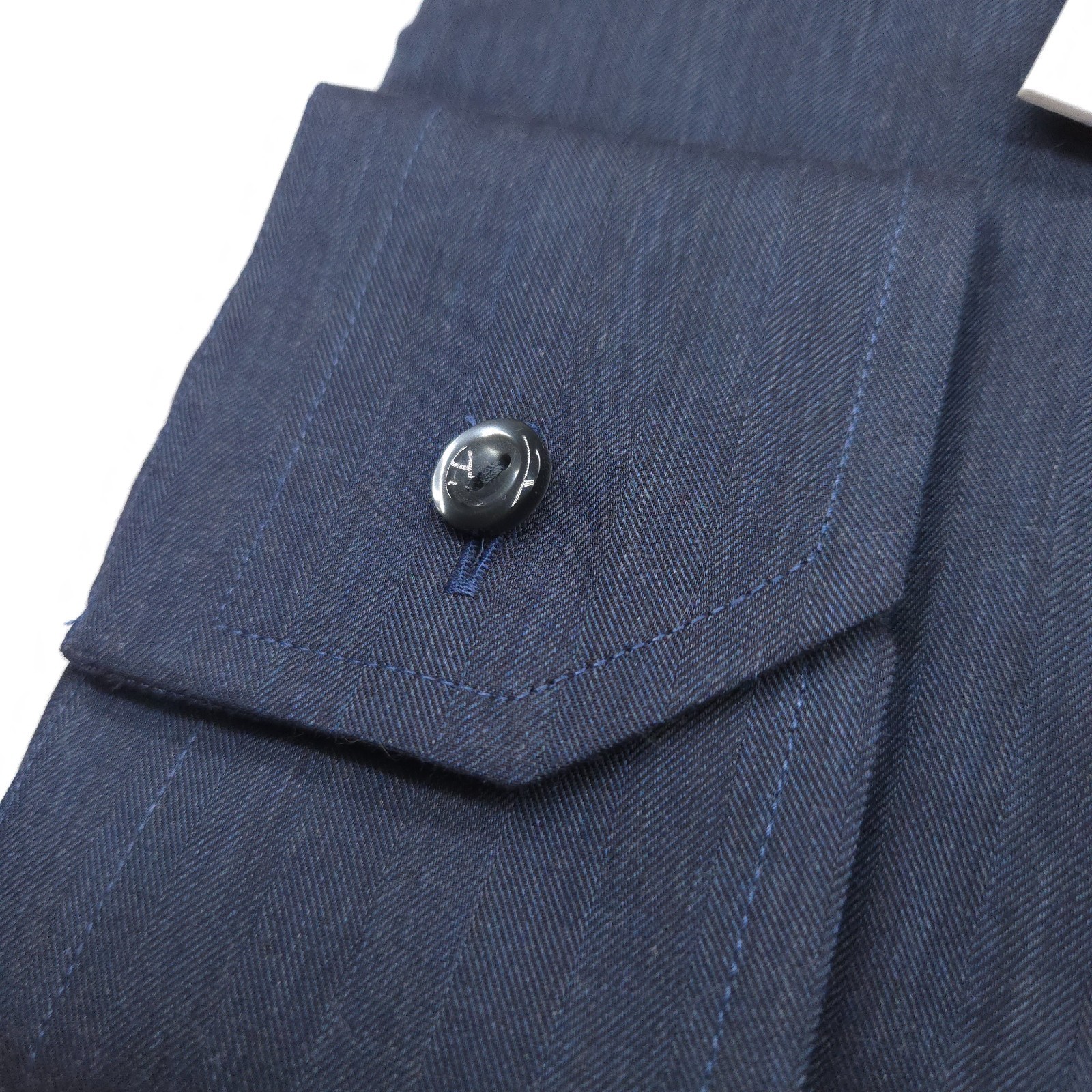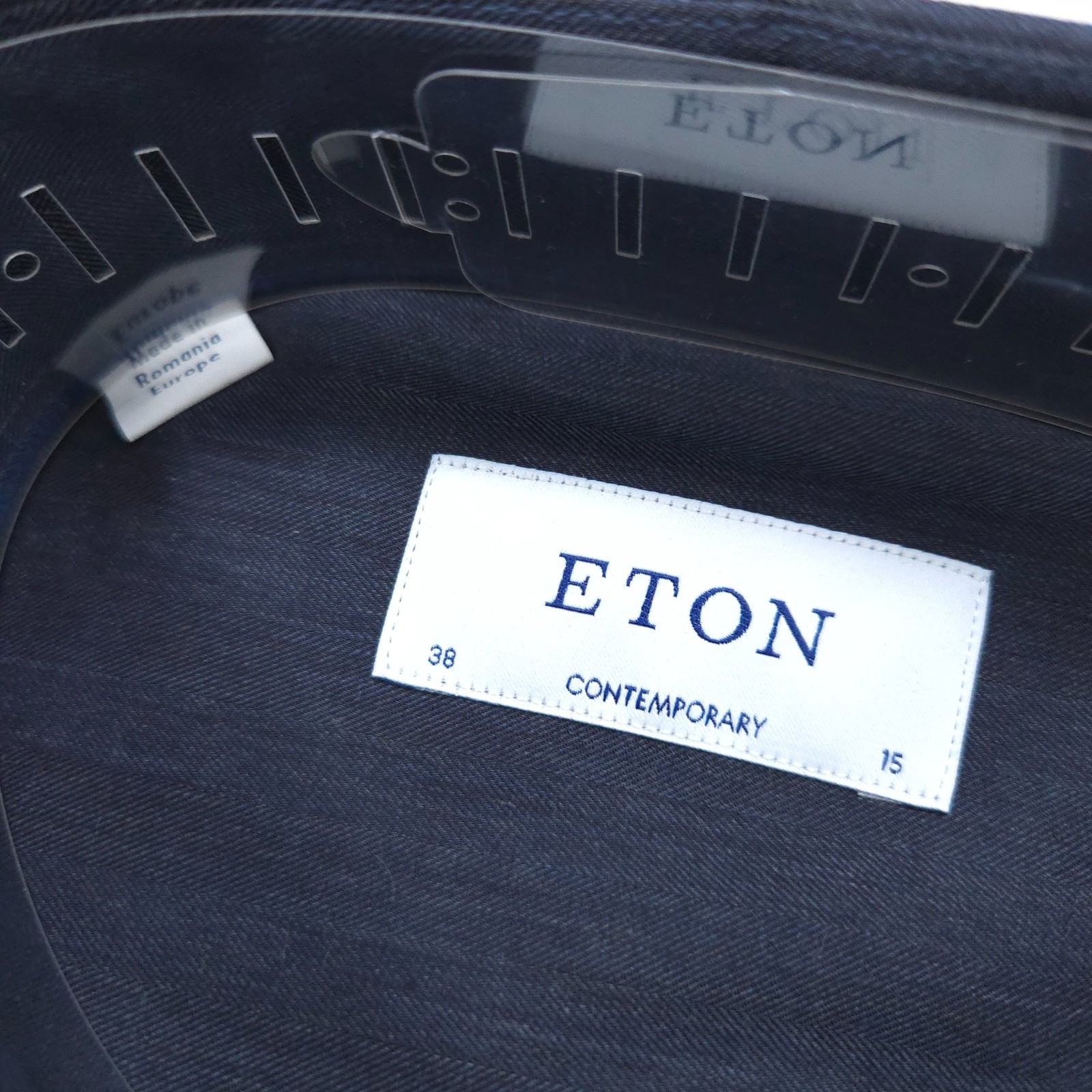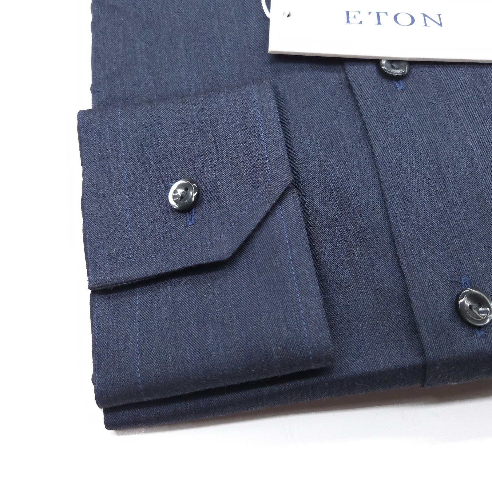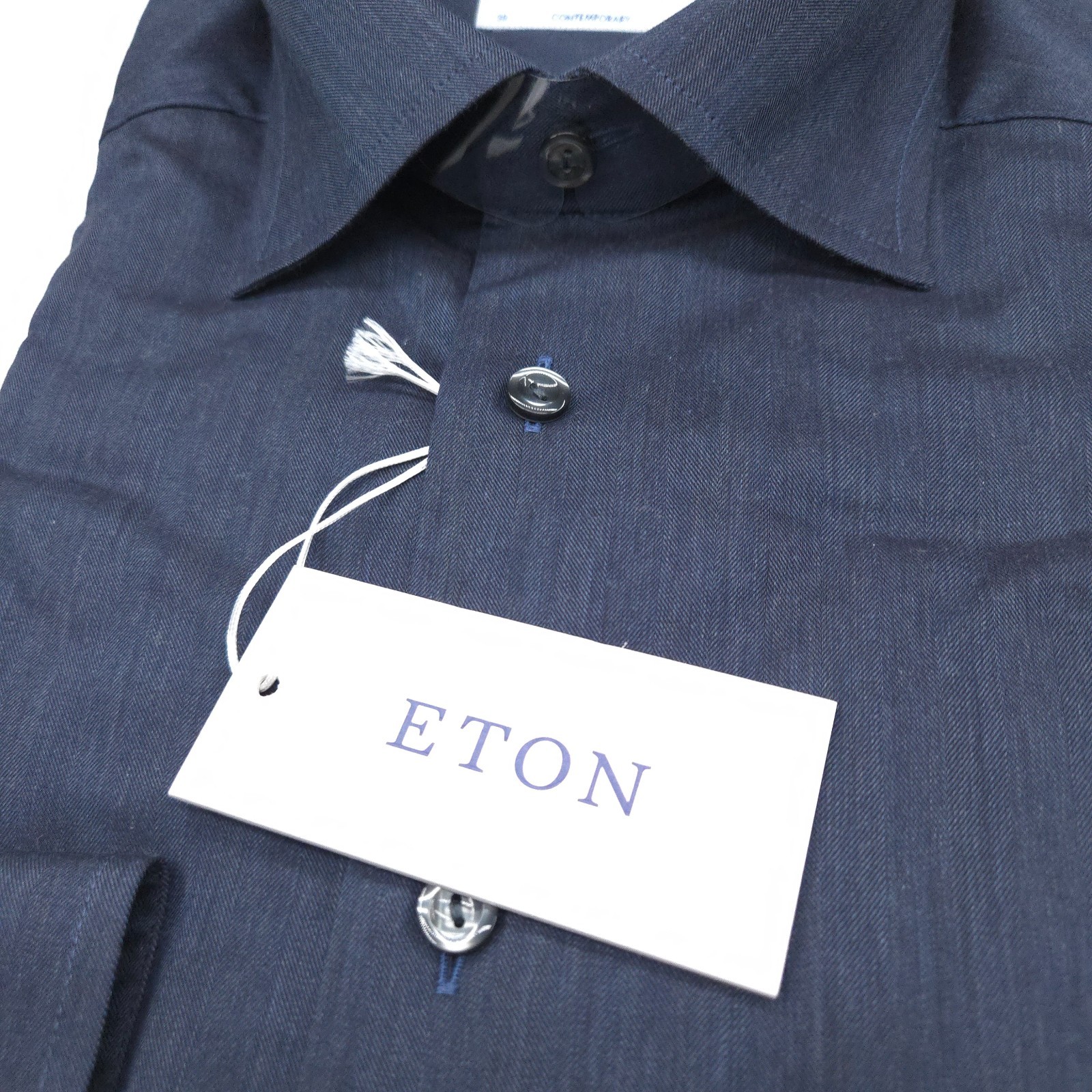 ETON DRESS SHIRT -15 35 36 NAVY BLUE -CONTEMPORARY SLIM -HERRINGBONE TWILL DENIM