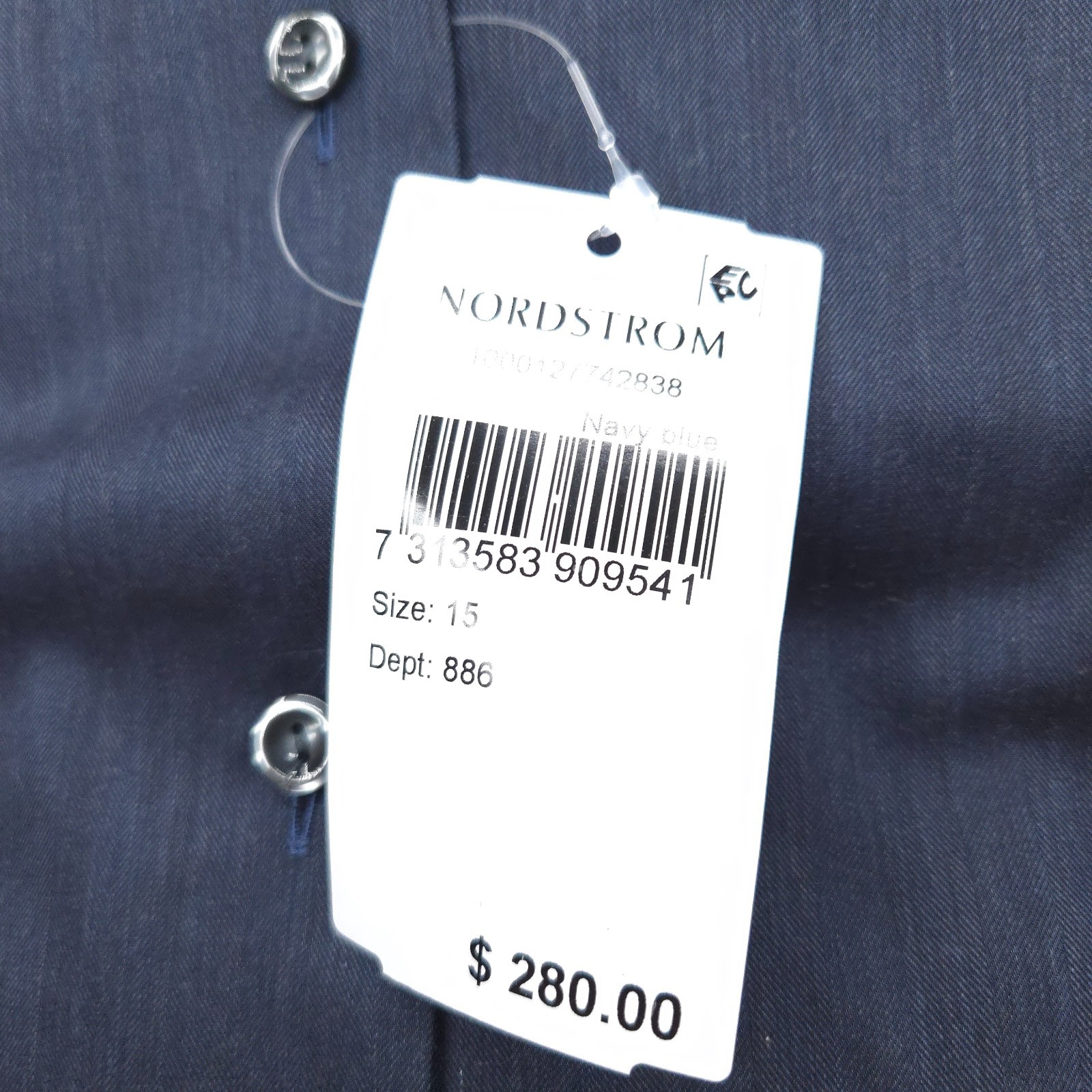 как выглядит ETON DRESS SHIRT -15 35 36 NAVY BLUE -CONTEMPORARY SLIM -HERRINGBONE TWILL DENIM фото