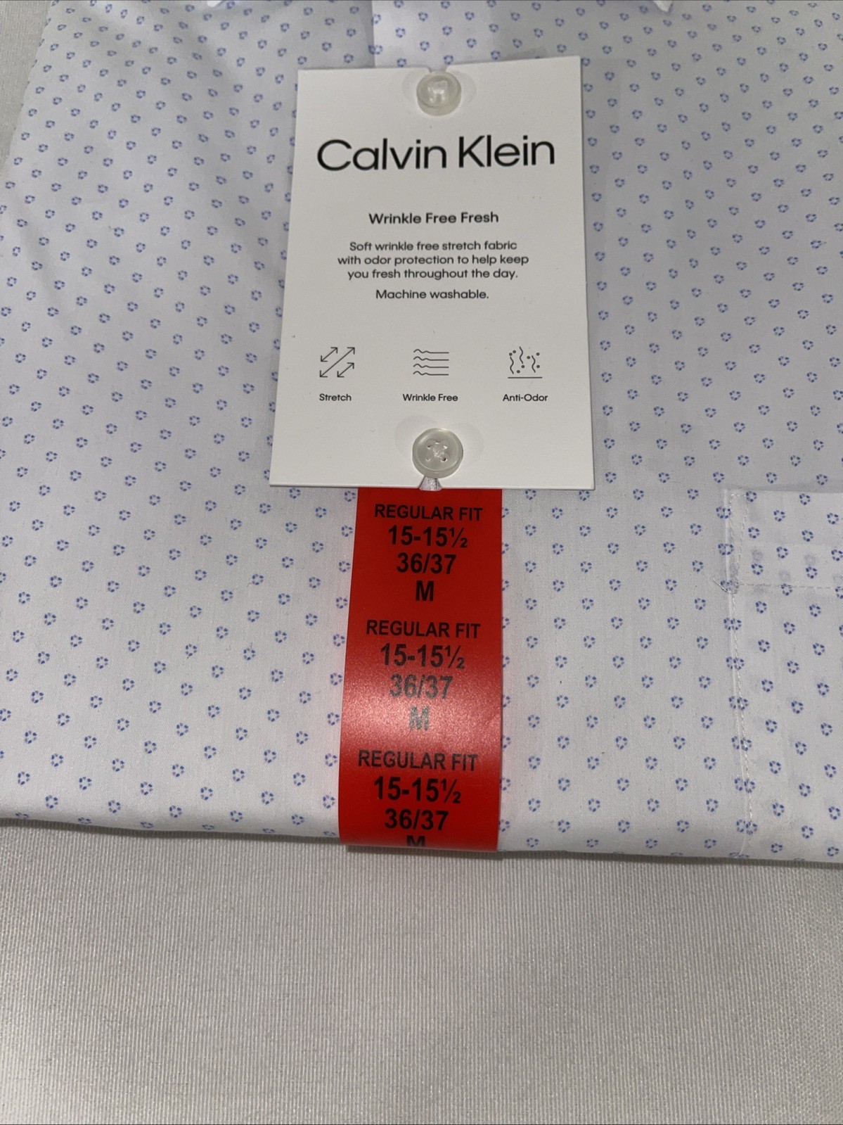 Calvin Klein Men's Wrinkle Free Dress Shirt White MEDUIM 15-15.5 36/37