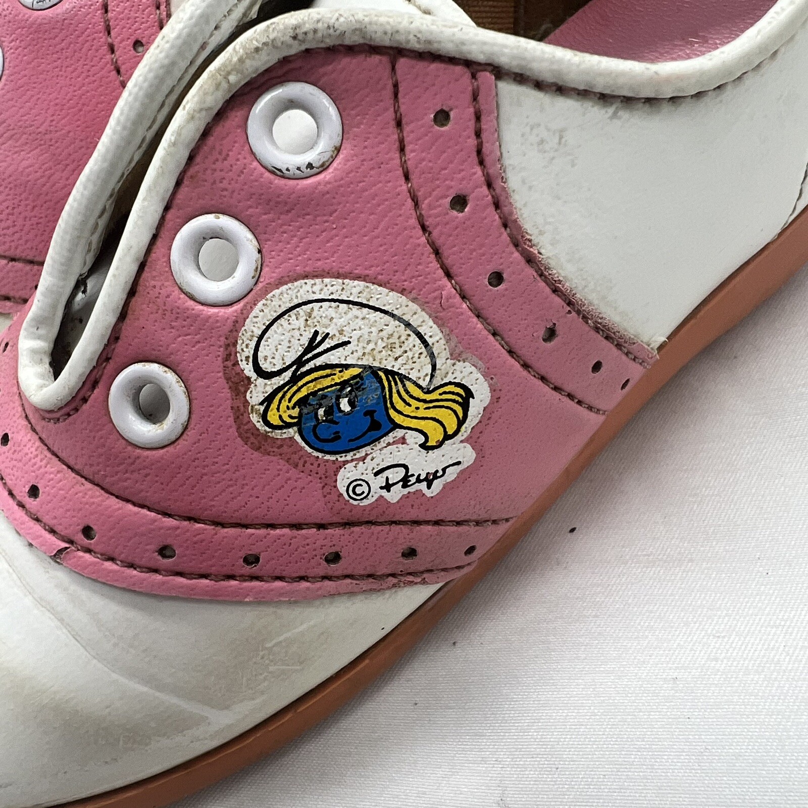 как выглядит Vintage Toddler Smurf Shoes Pink And White Size 6 1/2 Used Some Discoloration фото