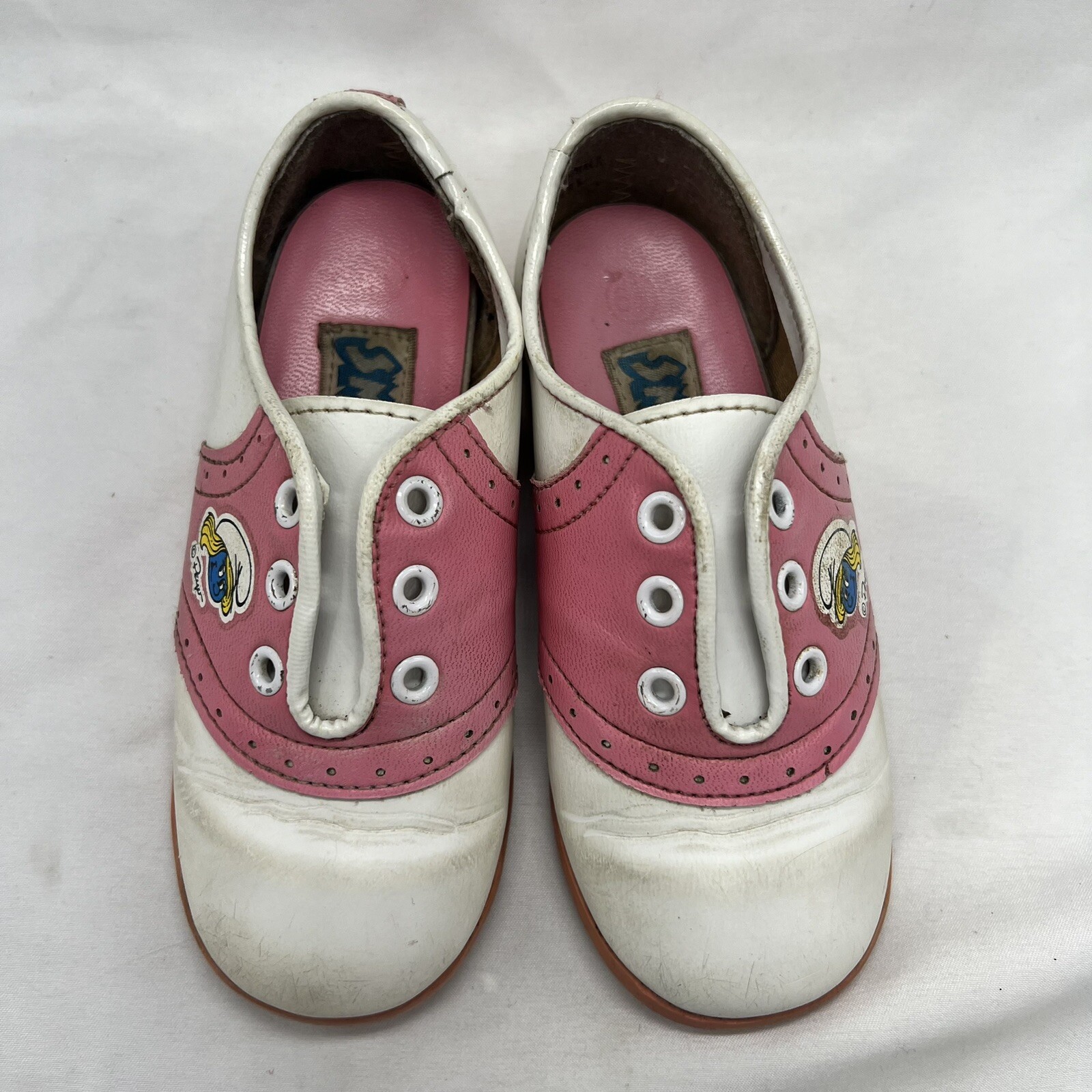 Vintage Toddler Smurf Shoes Pink And White Size 6 1/2 Used Some Discoloration