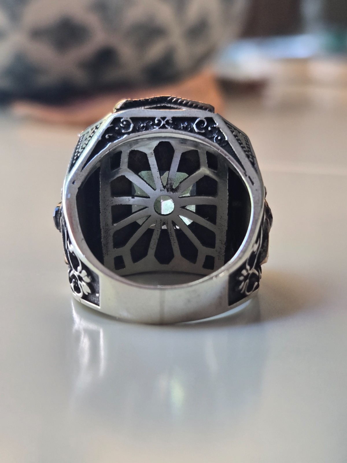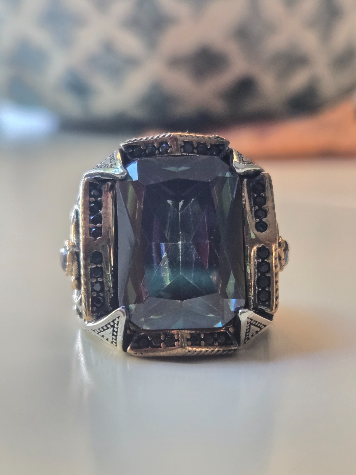 как выглядит 925 Sterling Silver Mystic Topaz Ring  Bold Faceted Cut, Gothic Design фото