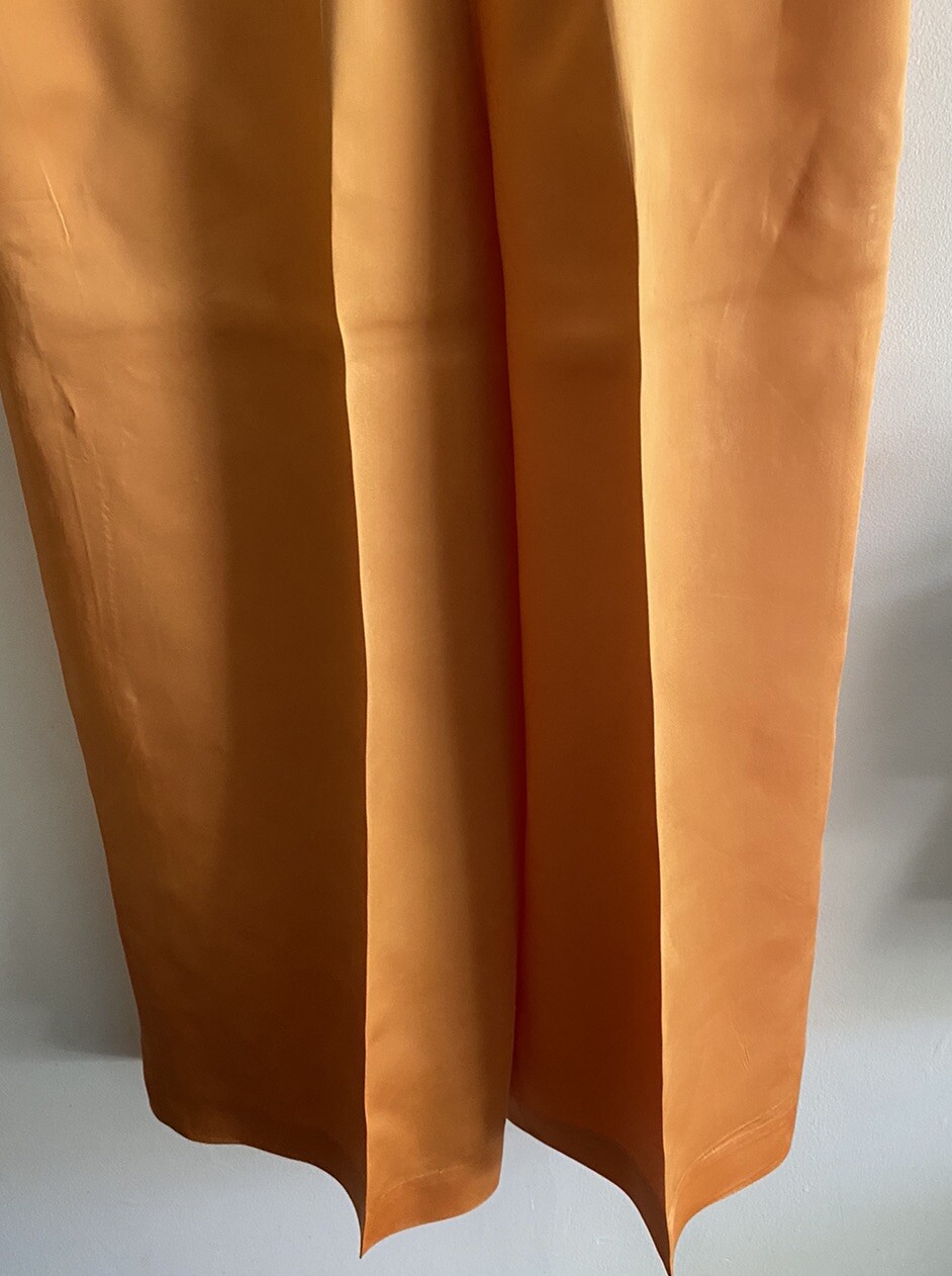 как выглядит Vintage Peach Satin Slacks Pants Wide Leg 14 Back Zipper Waist 26 Length 39 XS фото